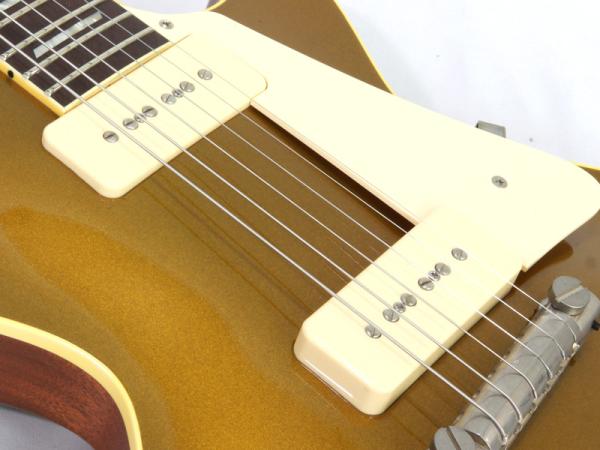 出音はP-90らしいエッジの利いたサウンド。か細さは当然皆無でリアポジションでの太さはハムバッキングを思わせるほどに豪快なサウンドです。しかしながらボリュームやトーン、ピッキングにへの追従性はきらびやで繊細なシングルサウンド。ラップアラウンドブリッジによるダイレクトなボディ鳴りによる恩恵が大きいように思います。ミックス時のキレ良さは最もシングルピックアップらしいとも言えます。カッティングやアルペジオプレイでの音の立ち上がりは心地よいコンプ感を感じさせてくれます。そして、フロントは非常にスウィートで甘さが特徴。フルアコを思わせるようなリッチさが弾いていてとても心地よいです。