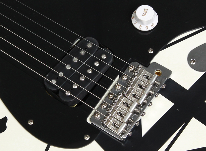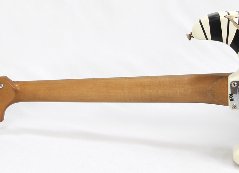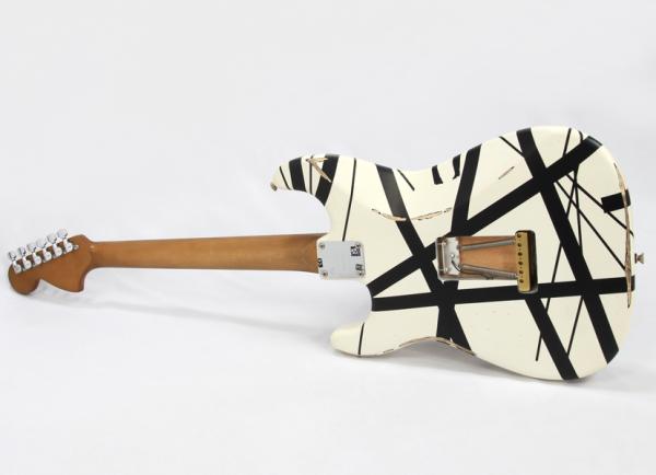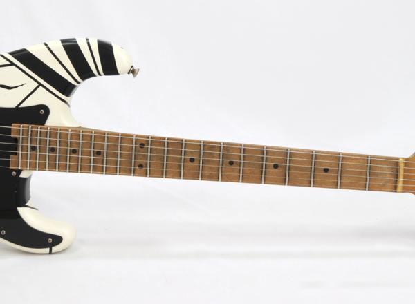 Stratocasterスタイルのバスウッドボディにはエディの有名なホワイト&ブラック・ストライプのペインティングが施され、クォーターソーンメイプルネックには手作業によって仕上げられたサテンウレタンバックフィニッシュです。22本のジャンボフレットを装備した12~16インチコンパウンドラジアスのメイプル指板は、スピーディかつテクニカルなプレイスタイルに最適な快適さを提供します。