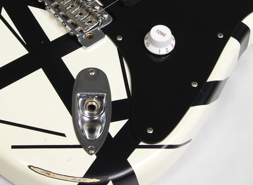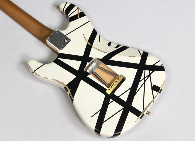 これらのカスタマイズは自分の潜在能力を最大限に発揮するために必要性に迫られて行ったもの、とエディは生前語っています。ネックのリフレットやハムバッカーのパラフィンワックスポッティング、"TONE"とラベリングされたノブを使用したマスターボリュームのみのコントロール類のシンプル化、58年製ストラトのブラスナットとテイルピースの採用、ブラックピックガード、アイコニックなストライプ柄など、オリジナルギターには多種多様なカスタマイズの形跡が見られます。