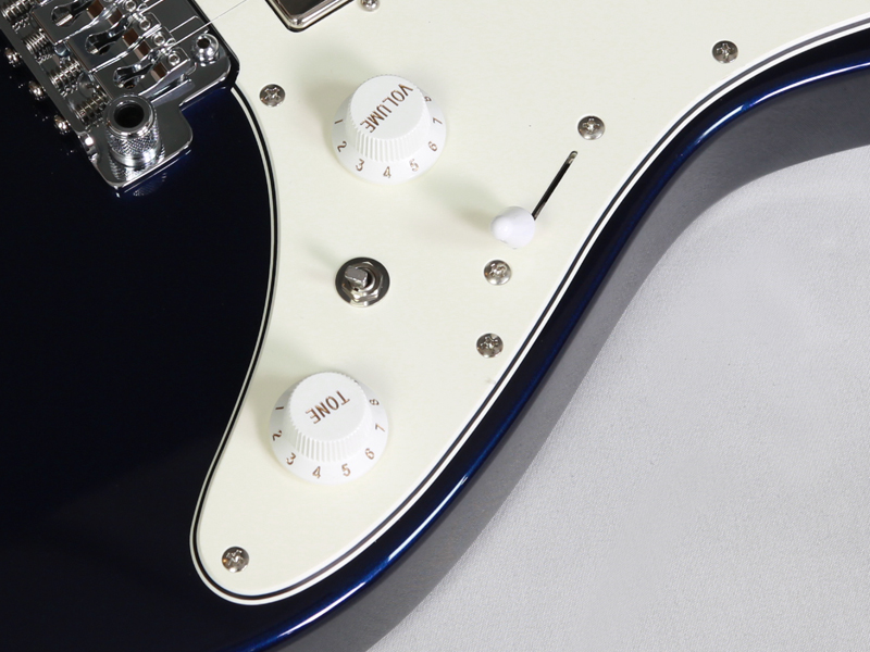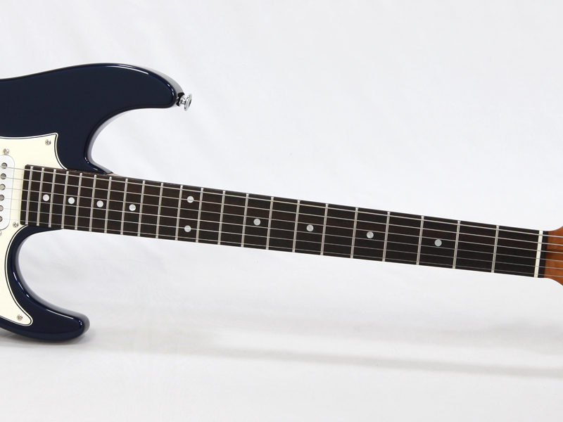 GOTOH製マグナムロックペグ、シンクロトレモロ、ステンレスフレット、ボディのコンターやネックジョイント部の球面仕上げ、蓄光素材のサイドポジションマークなど現代的な演奏性の高さを求めてひと手間ふた手間かけた拘りの感じられる一本。