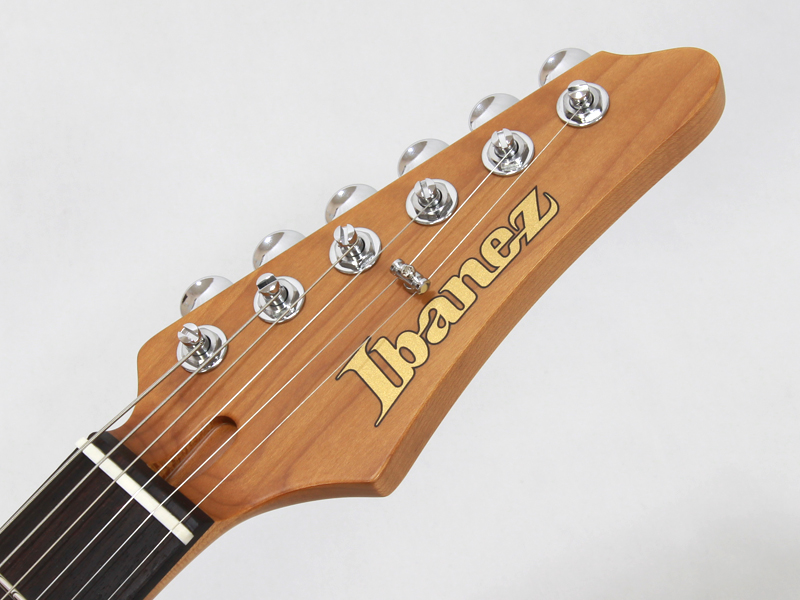 オリジナルのボディ形状を採用したアルダーボディ、エステック処理を施したローステッドメイプルネックにローズウッド指板、ネック形状は従来のネックより少し厚く設計、弾きやすいオイルフィニッシュ仕上げにしています。Ibanezの薄ネックが苦手な方にも手に馴染むような適度な厚さです。指板はコンパウンドラジアスを採用しスムーズな演奏性を提供します。