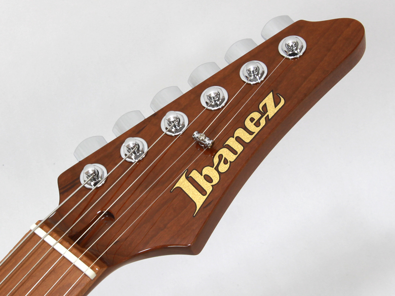 オリジナルのボディ形状を採用したバスウッドボディ、エステック処理を施したローステッドメイプルネック&指板、ネック形状は従来のネックより少し厚く設計、弾きやすいオイルフィニッシュ仕上げにしています。Ibanezの薄ネックが苦手な方にも手に馴染むような適度な厚さです。