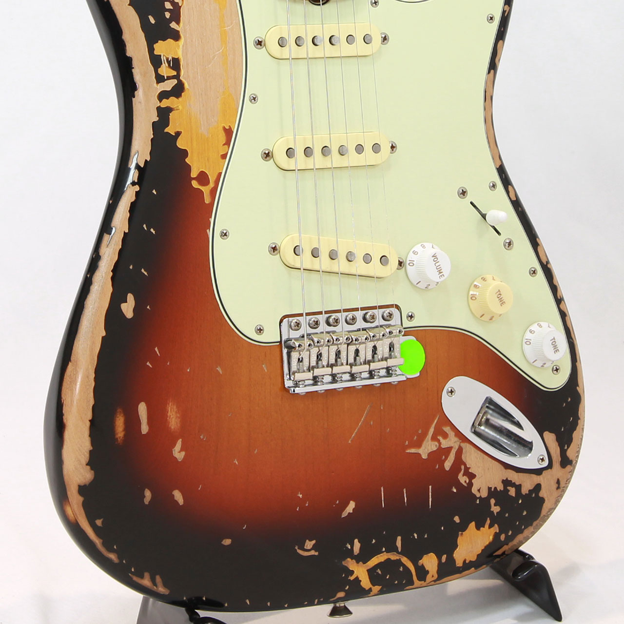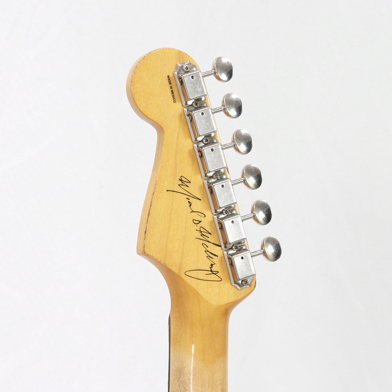 アルダーボディにRoad Wornラッカーフィニッシュを施し30年にわたるツアーやステージパフォーマンスで愛器についた味わい深い使用痕を再現しています。スリムな"C"シェイプメイプルネックに快適な9.5インチラジアススラブローズウッド指板を採用しマイクが愛用する1960年製ストラトキャスターのボディ形状を再現しました。