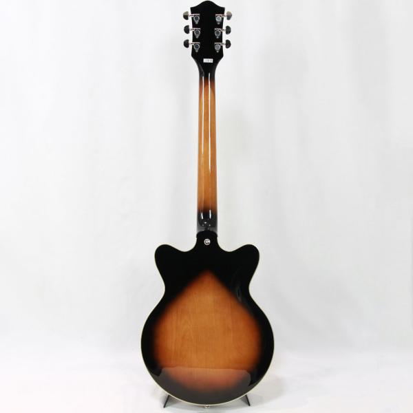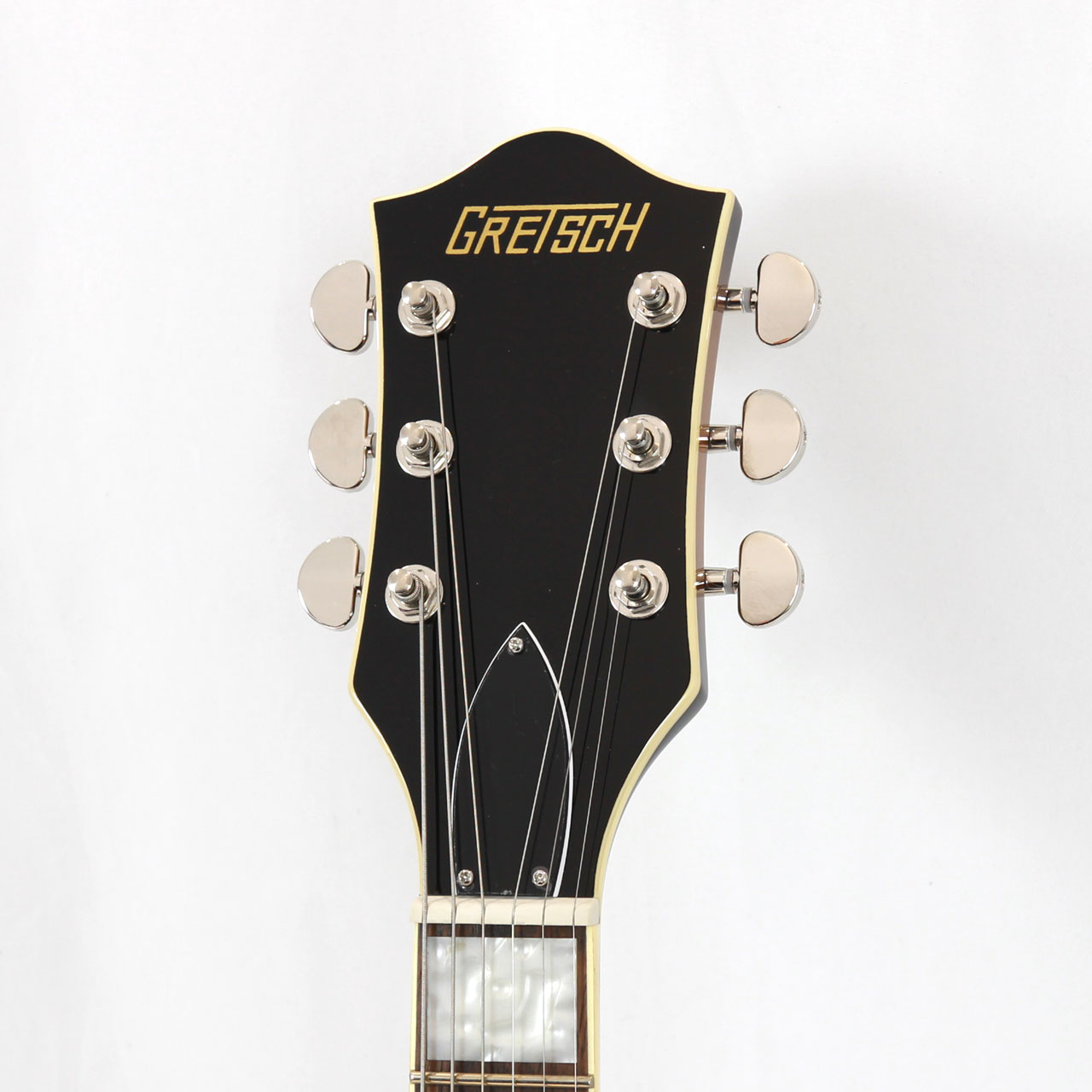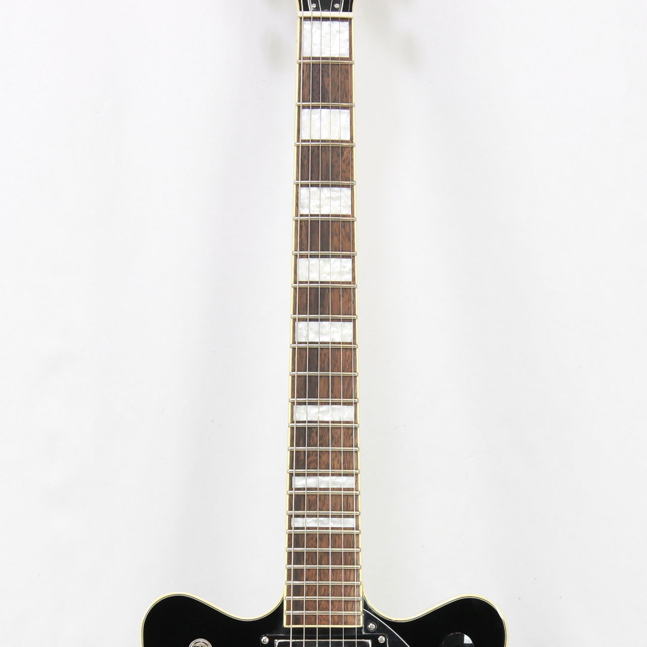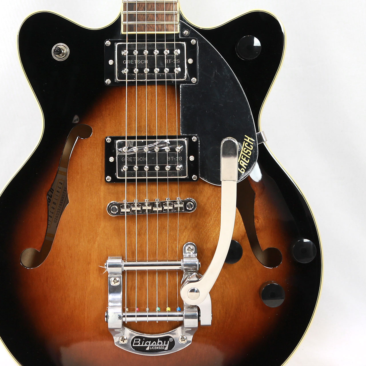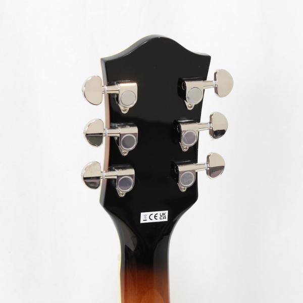 Gretschならではの高いデザインセンスはそのままにコンパクトに仕上げたボディサイズ。小さめのアーチドメイプルボディにスプルースセンターブロックを採用しバランスの良いサウンドを獲得しております。軽量で取り回しも非常に良く、抱え込みもしやすいので長時間のプレイや小柄な方にもオススメです。ビグスビーもオシャレですね。