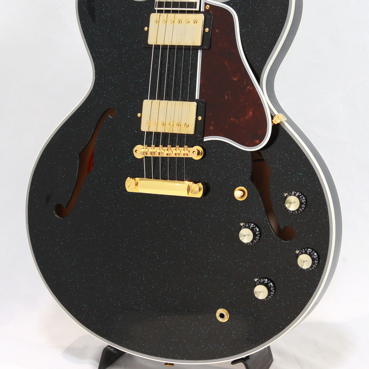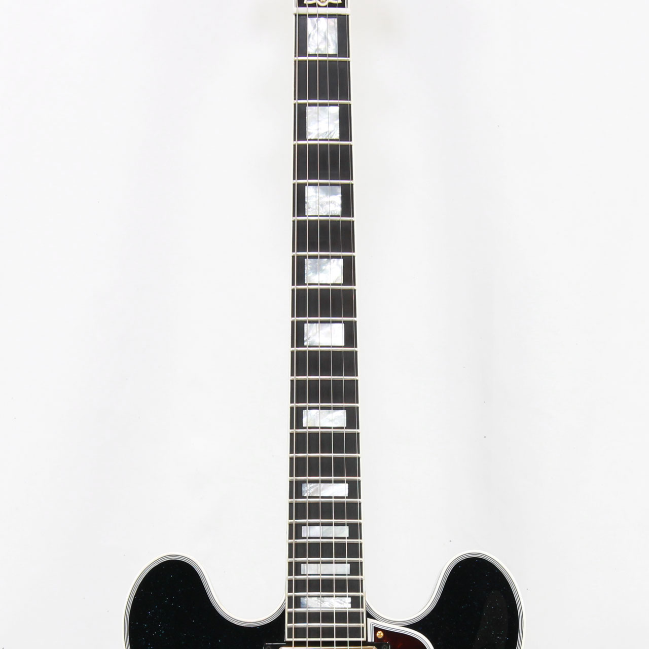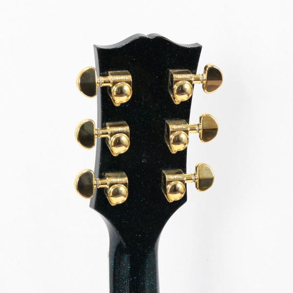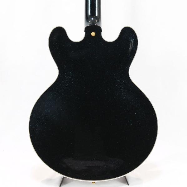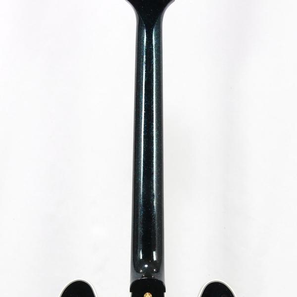 2022年製の60s ES-335をベースにアレンジメントを施した1本。Brunswick Hawaiian Blueというラメ塗装のフィニッシュで仕上げられております。見る角度によってはエボニーカラーにも見える嫌味の無いラメ感は立体感のあるルックスでステージ映えバツグンです。