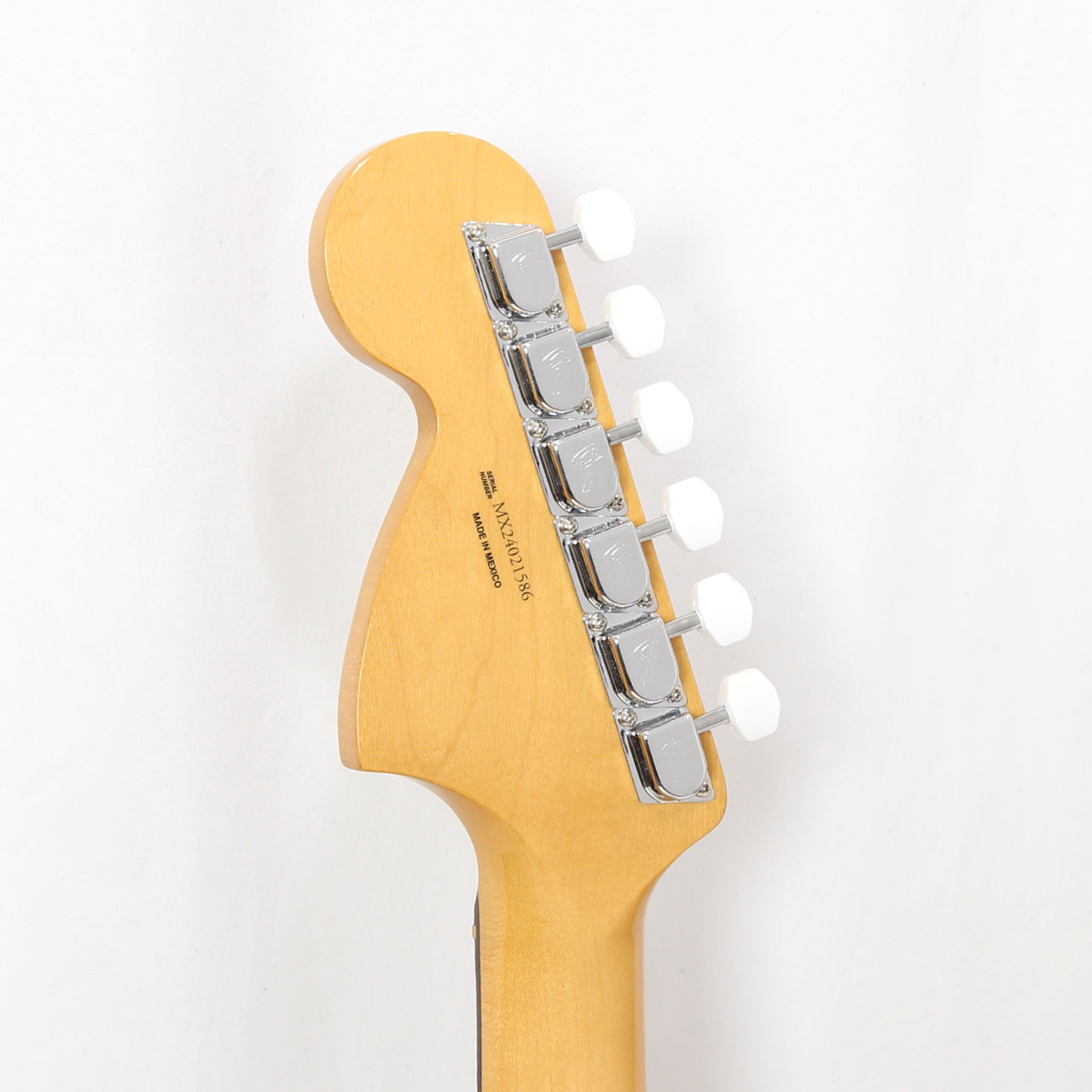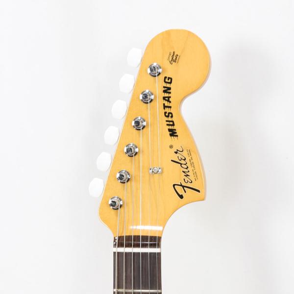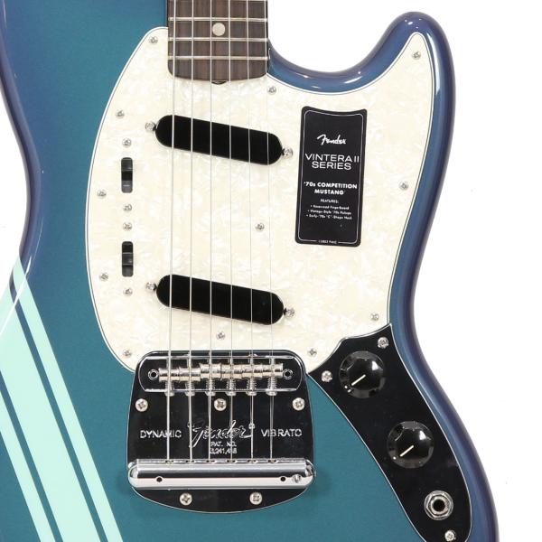ヴィンテージスタイルの'70sシングルコイルピックアップは煌びやかさと温かでダイナミックなパワフルさを併せ持ちアイコニックなフェンダーサウンドを提供します。ヴィンテージスタイルのMustang®フローティングトレモロと「F」刻印入りチューニングマシンはクラシックなルックスに加えイントネーションとチューニングの安定性を向上させます。