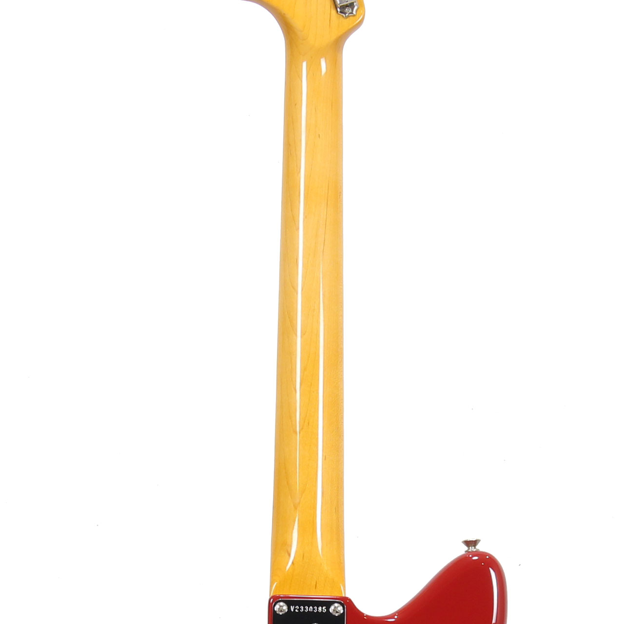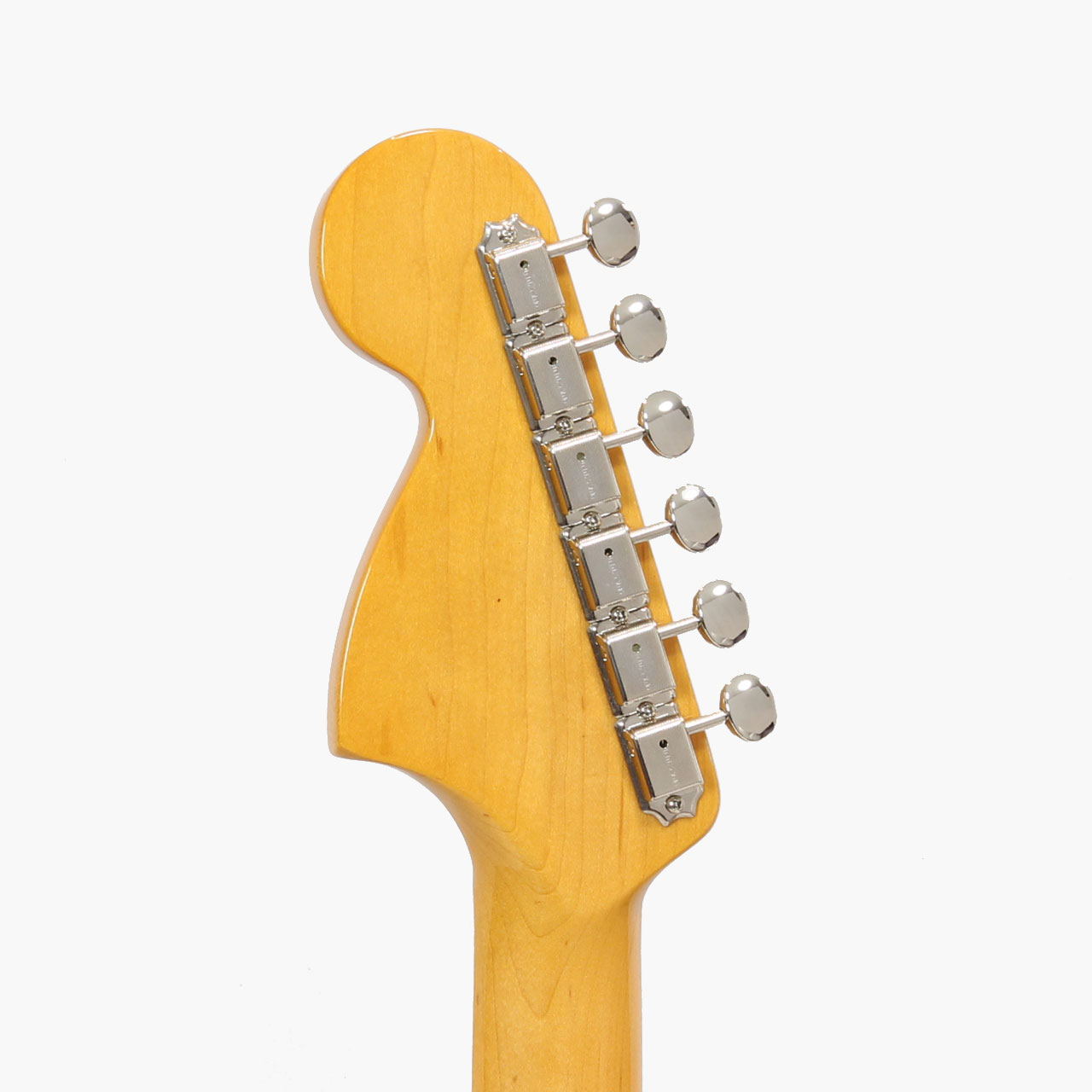 1966 "C"シェイプのメイプルネックを採用したAmerican Vintage II 1966 Jazzmasterはヴィンテージトールフレットを配した7.25インチラジアスのラウンドラムローズ指板を備え、まるで1966年に舞い戻ったかのような、当時の楽器の演奏性を彷彿させます。ホワイトネックバインディング、パールブロックインレイ、Fender Deluxeチューニングマシン、そしてカスタムカラーモデルにはマッチングヘッドを備えるなど、1966年生産のJazzmasterの特徴を纏ったギターとなっています。特許取得のフローティングトレモロ、スレデッドサドル式のアジャスタブルブリッジ、リズム/リード回路に配線されたPure Vintage '66 Jazzmasterピックアップが、クラシックなトーンとオーセンティックなフェンダーのフィーリングを提供します。