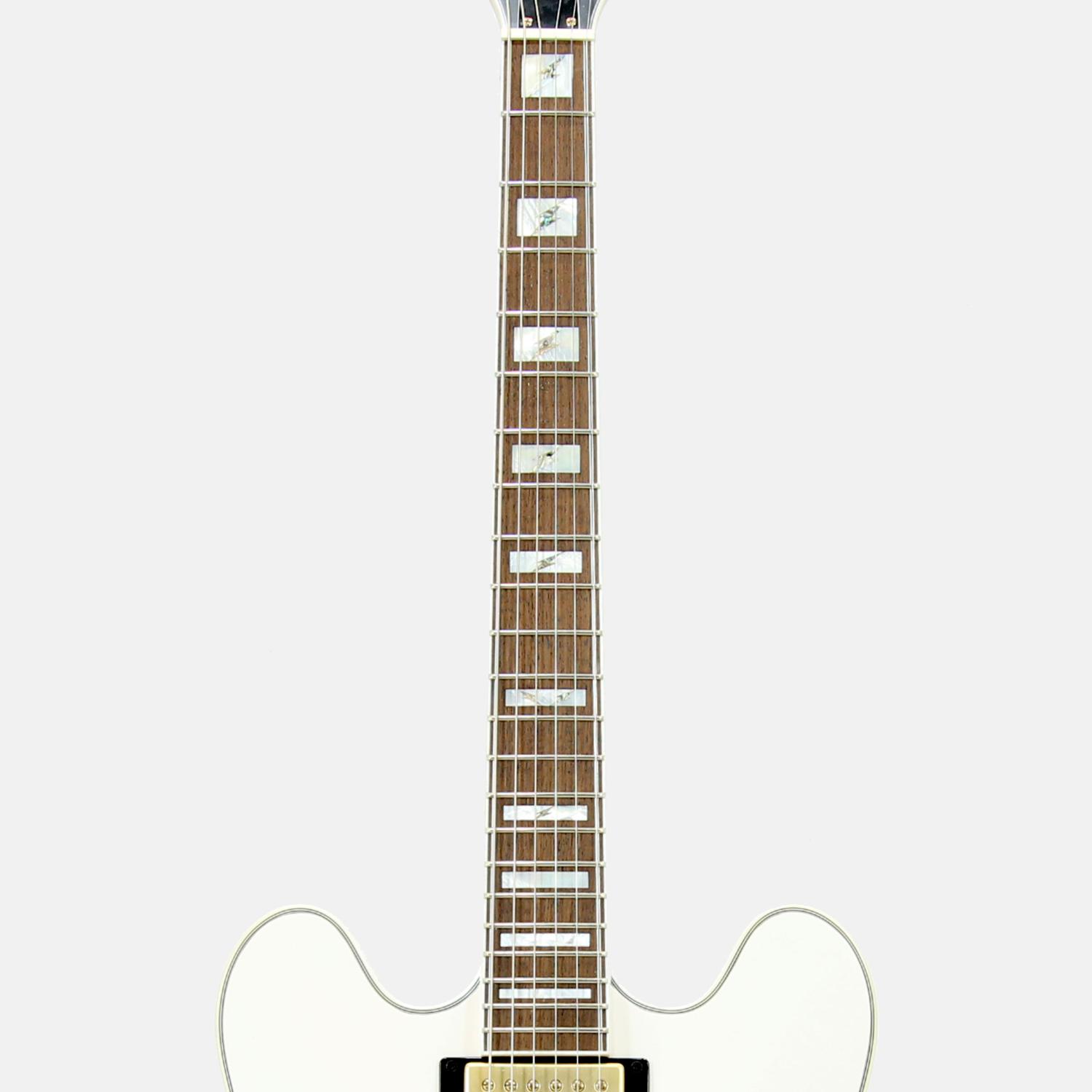 シェラトンをベースに彼女らしいアイディアが随所に詰まったシグネイチャーモデル。カラマズーシェイプのヘッドとツリーオブライフインレイでゴージャスなルックス。ギブソン・トリニロペスモデルでお馴染みのダイヤモンドサウンドホールでしシャープな印象を表現、ホワイトカラーともベストマッチです。