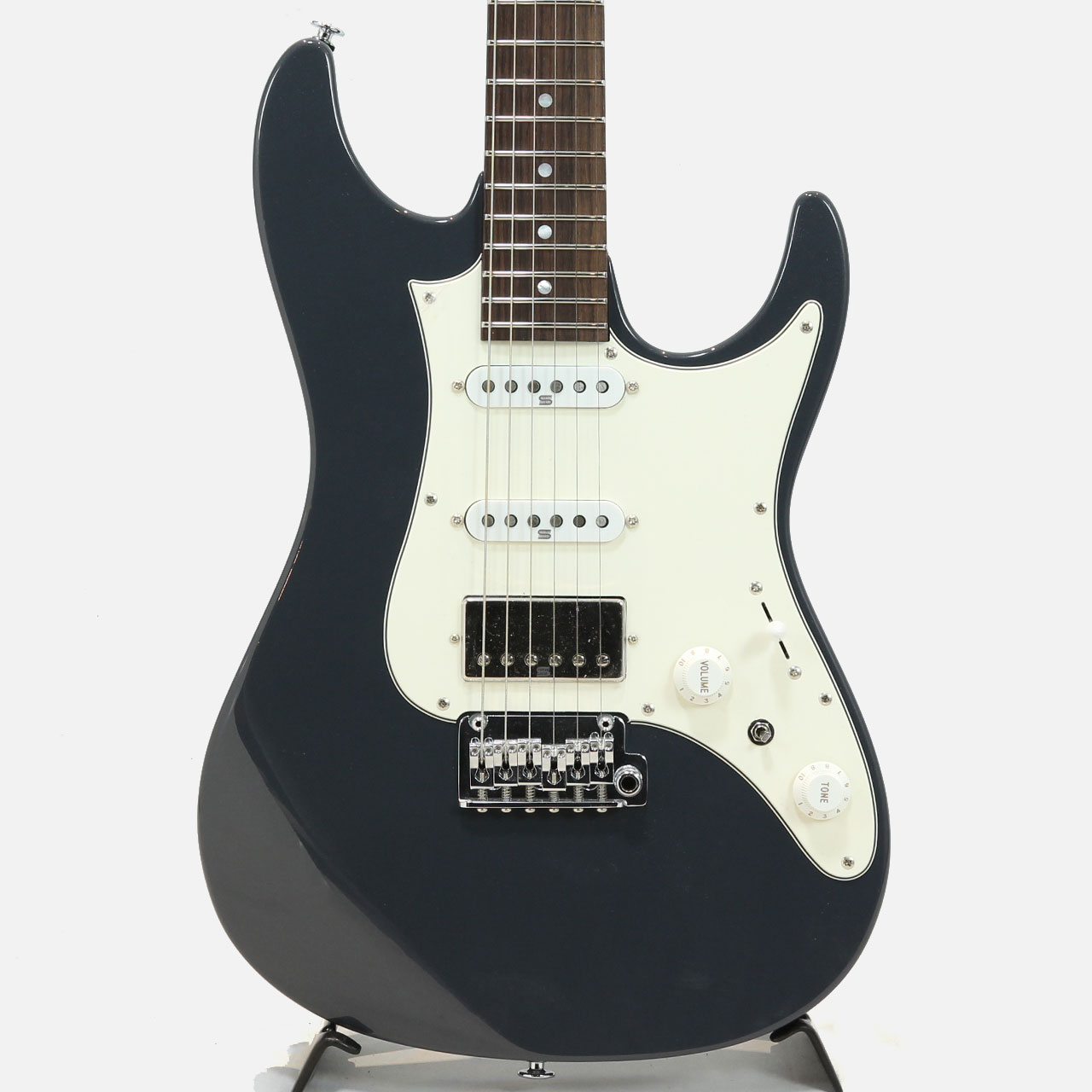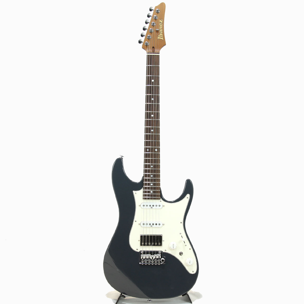 オリジナルのボディ形状を採用したアルダーボディ、エステック処理を施したローステッドメイプルネックにローズウッド指板、ネック形状は従来のネックより少し厚く設計、弾きやすいオイルフィニッシュ仕上げにしています。Ibanezの薄ネックが苦手な方にも手に馴染むような適度な厚さです。指板はコンパウンドラジアスを採用しスムーズな演奏性を提供します。