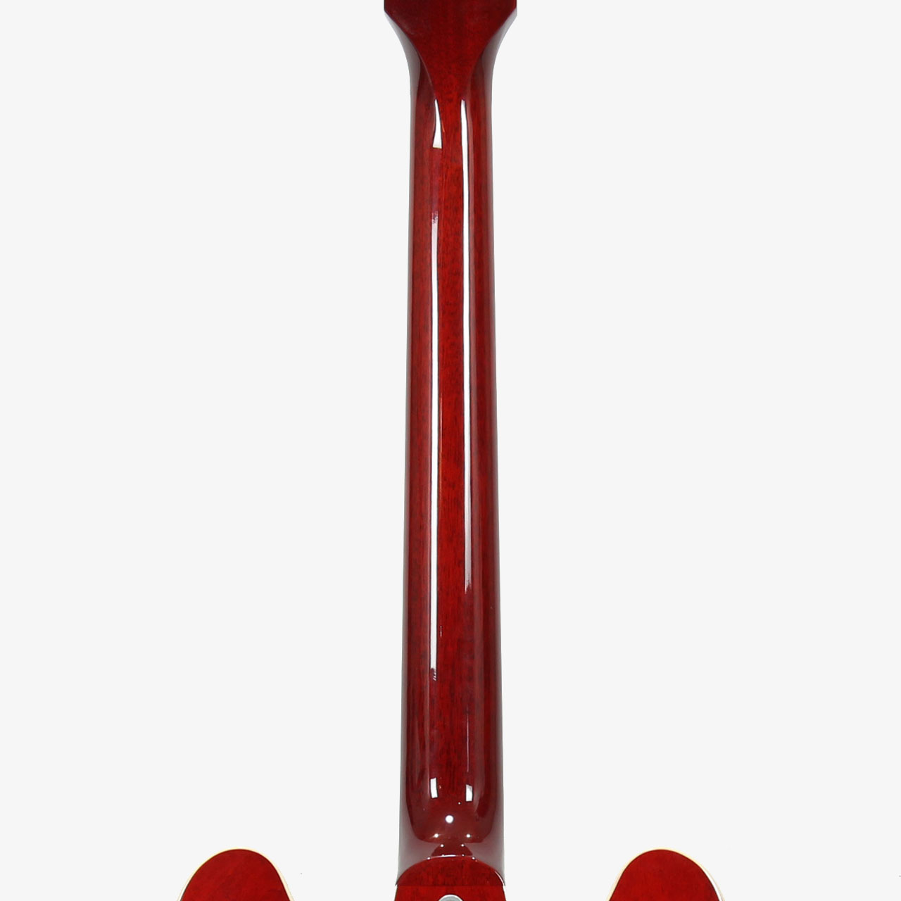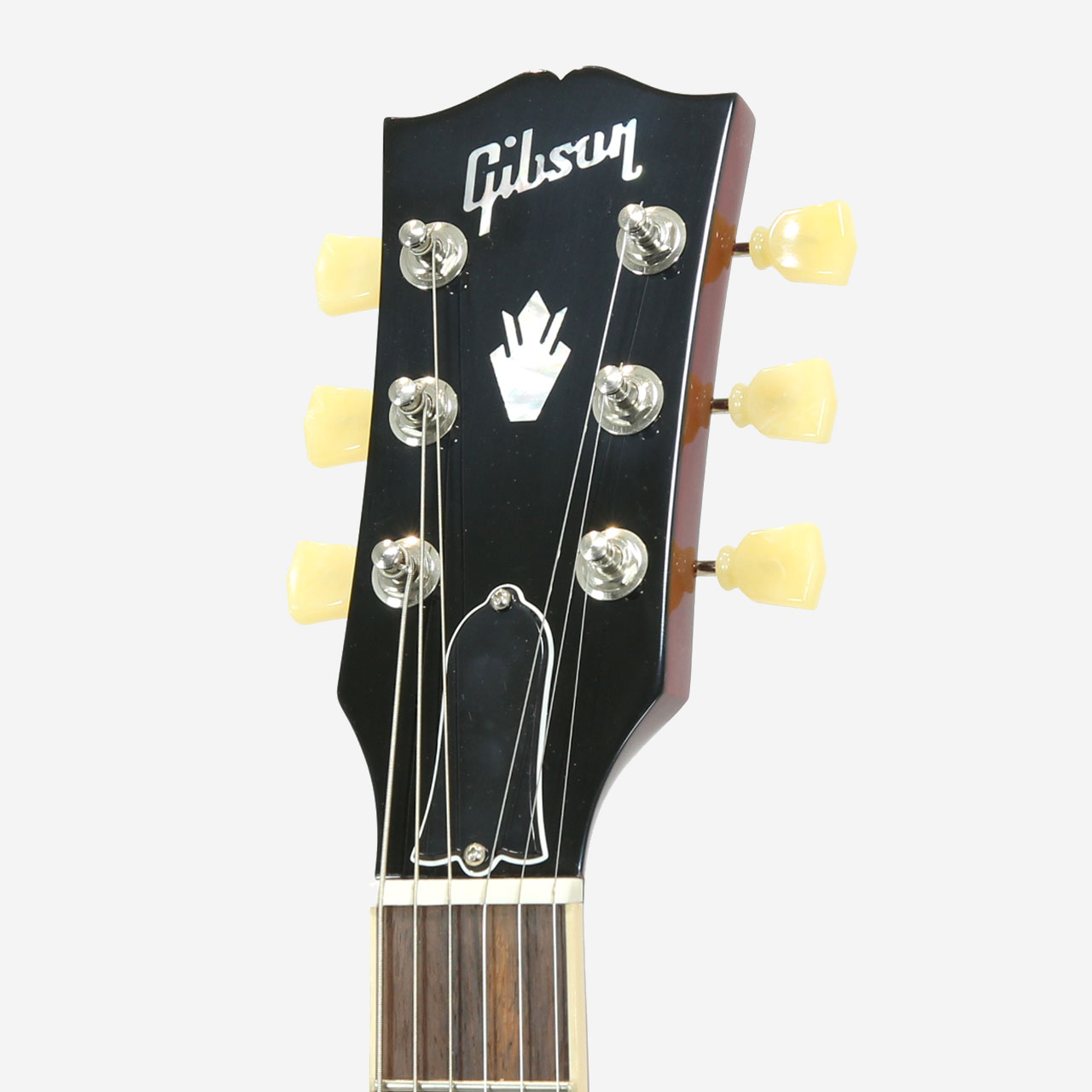 メイプルセンターブロック、クオーターソーン・アディロンダックスプルースブレーシングを擁し軽量な構造による取り回しの良さと軽快な鳴りをアウトプットしてくれます。ハンドワイアード・コントロール・アッセンブリー、オレンジ・ドロップ・キャパシター、ギブソンによる新開発のキャリブレート処理されたT-Typeハムバッキング・ピックアップ、ヴィンテージ・デラックス・スタイル・チューナー、ABR-1ブリッジ、そしてスチール製のサムホイールとスタッドで固定されたアルミ素材によるストップバー・テイルピースといったハイエンドモデル向けのパーツが搭載されています。バリトーンスイッチを廃しモノラルアウト仕様とされた本機は扱いやすく現代仕様にアップデートされたモデルと言えます。