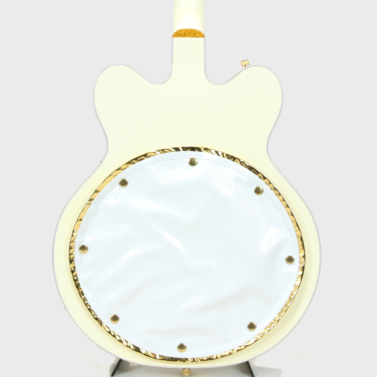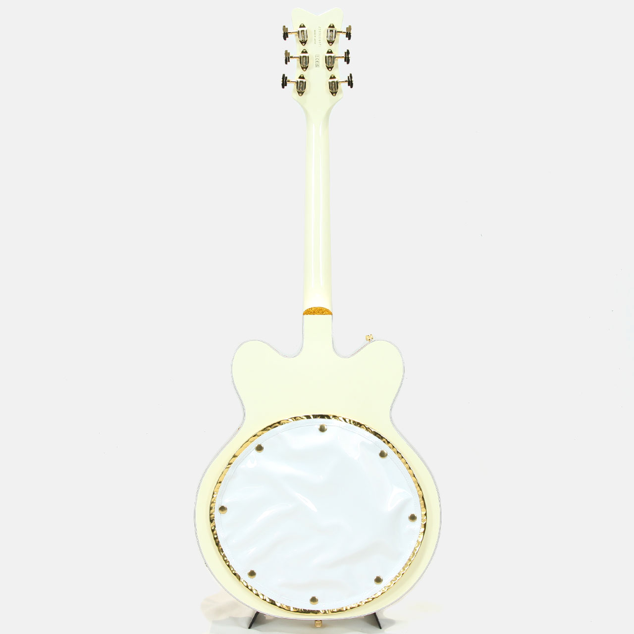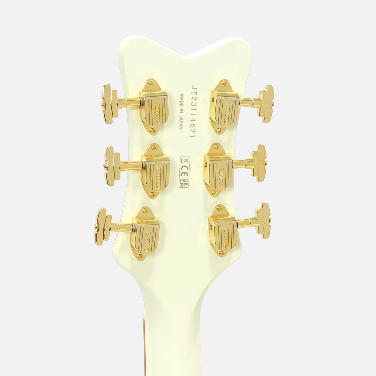 ハードウェアはすべてゴールドで統一され、ジュエルGアローノブ、Bigsby B6Gを搭載し、ピン止めエボニーベースにSpace Controlブリッジ、ヴィンテージスタイルの厚みのあるプレキシピックガードを組み合わせています。