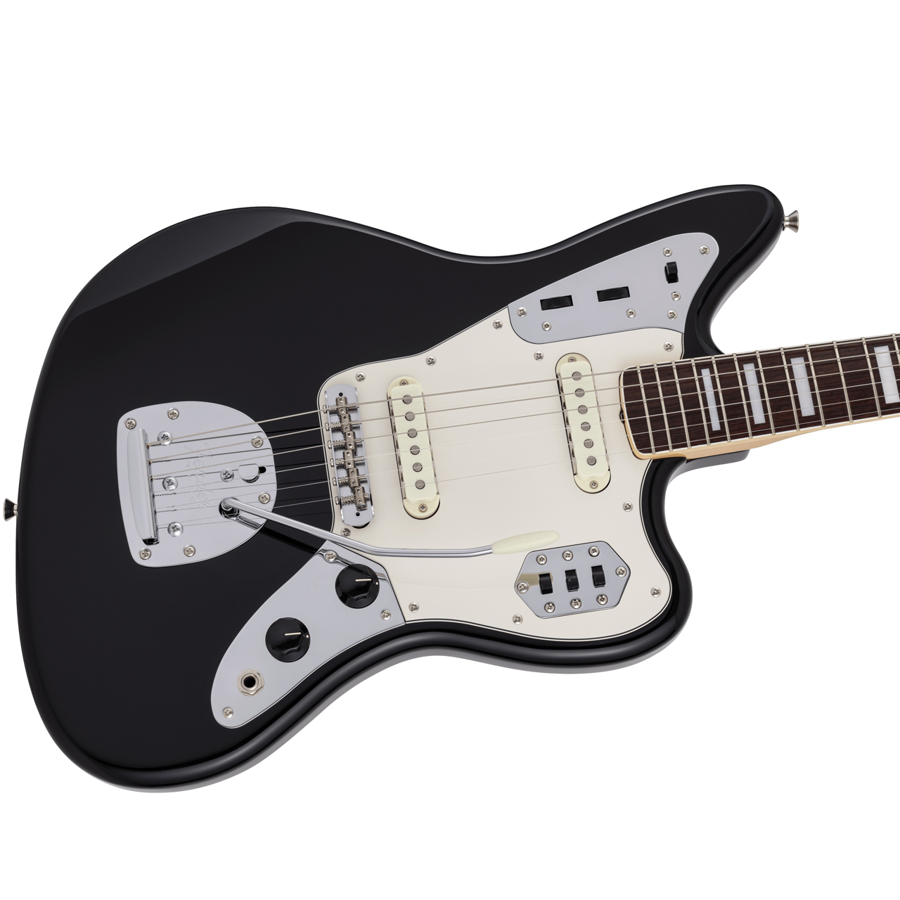 Made in Japan Traditional Late '60s Jaguarはグロスフィニッシュのバスウッドボディにヴィンテージスタイルの22フレットを採用し、9.5インチラジアスの”U” シェイプメイプルネックがTraditionalシリーズならではのクラシカルな演奏製を提供します。フローティングトレモロテイルピース付きの6サドル式ヴィンテージスタイルブリッジ、そしてTraditionalシリーズのために選定されたオリジナルピックアップはリアルで音楽的なヴィンテージトーンを奏でます。