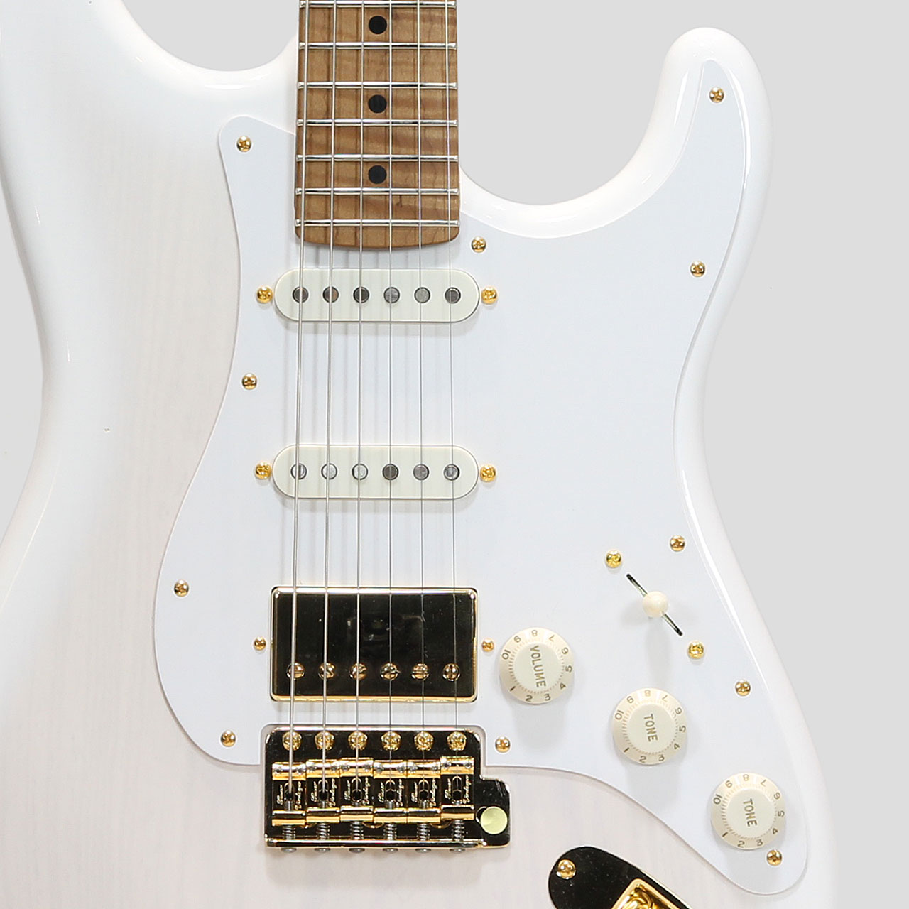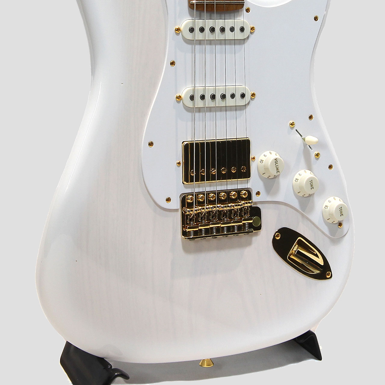 杢目が透けるWhite Blonde系カラーにSSHのSTスタイル。PAF系のカバードハムバッカーを搭載したコンポーネントスタイル発祥モデルの様な1本。