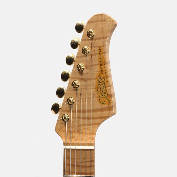 美しいAAAAグレードのフレイムローステッドメイプルネックの塗装は極薄仕上げで高次元なサウンドをアウトプットしてくれます。この素晴らしいネックマテリアルの素性とポテンシャルを存分に引き出すフィニッシュがヴィンテージフィールを持ちながらも現代音楽にマッチするように洗練されたXoticトーンを決定付けていると言っても過言ではありません。ニュアンスに対して余すことなく応えてくれるのでピッキングでトーンコントロールを積極的にしたいギタリストに是非試していただきたいです。