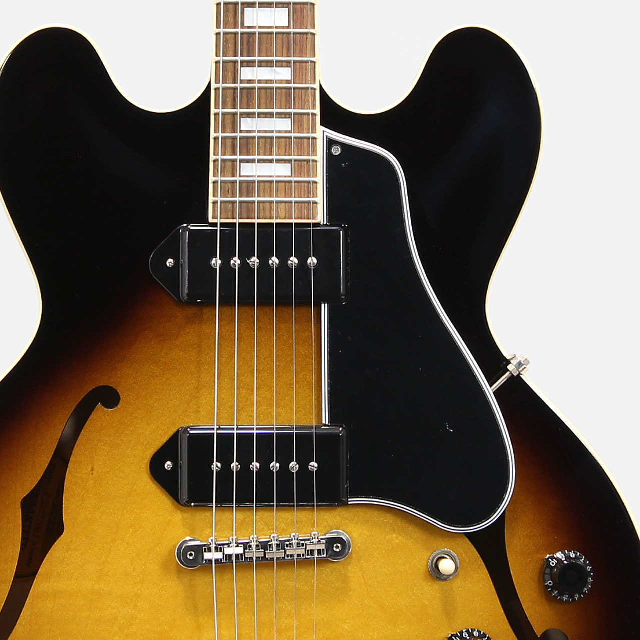 特徴的なサウンド、快適な演奏性とクラシカルなルックスで高い評価を得ており、多用途でヴィンテージ風ESスタイルのエレキギターを求めるミュージシャンに愛用されているES-330。Epiphone Casinoと近縁モデルでありメイプル/ポプラ/メイプルの3プライで構成されたフルホロウのシンラインボディ構造はセンターブロック構造のセミアコと異なるエアリーな生鳴りが特徴でトラペーズテイルピースと相まって独特のテンション感とサウンドをアウトプットしてくれます。