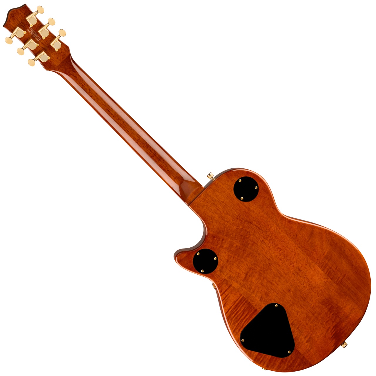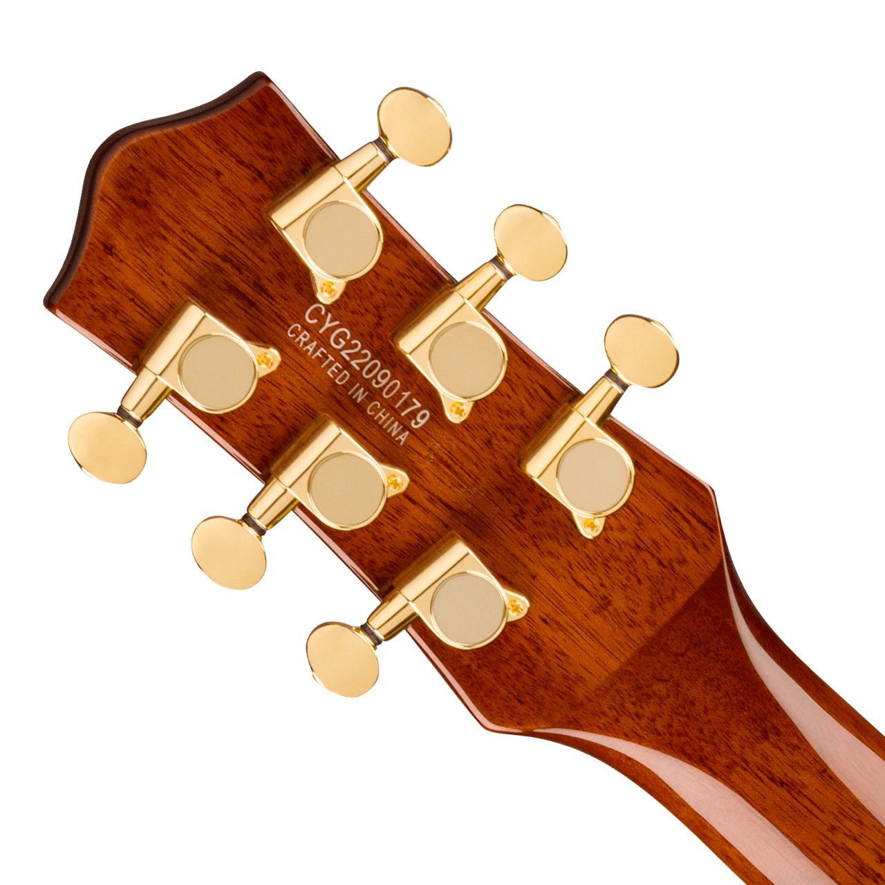 マホガニーネックにチェンバー構造のマホガニーボディ、そしてFT-5Eフィルタートロンピックアップはガッツあるロックサウンドをアウトプットしてくれます。リミテッドモデルならではのホワイトゴールドのボディトップにステンカラーのボディ・ネックの2トーン仕様。個性的なビグスビーにゴールドパーツ。クリームインサートが施されたピックアップなど限定感溢れるルックスに仕上がっています。