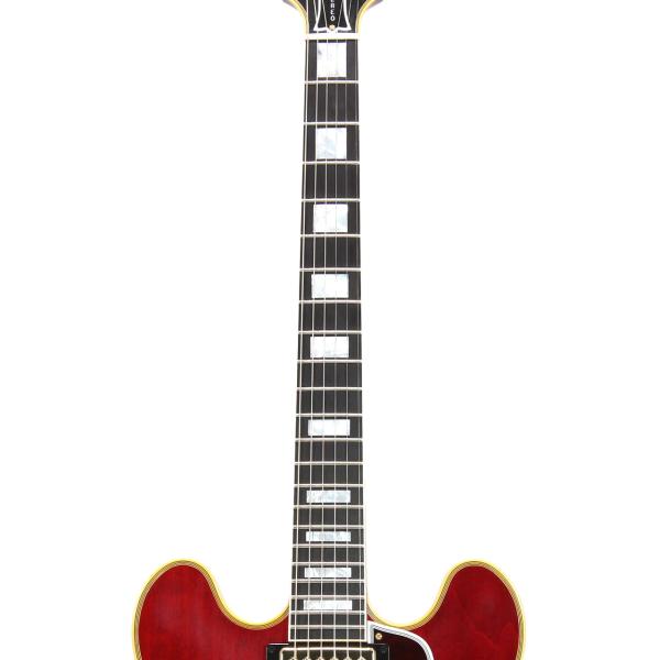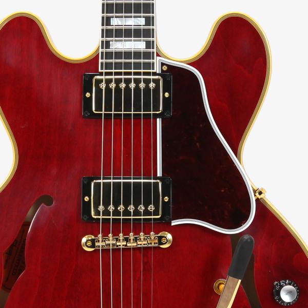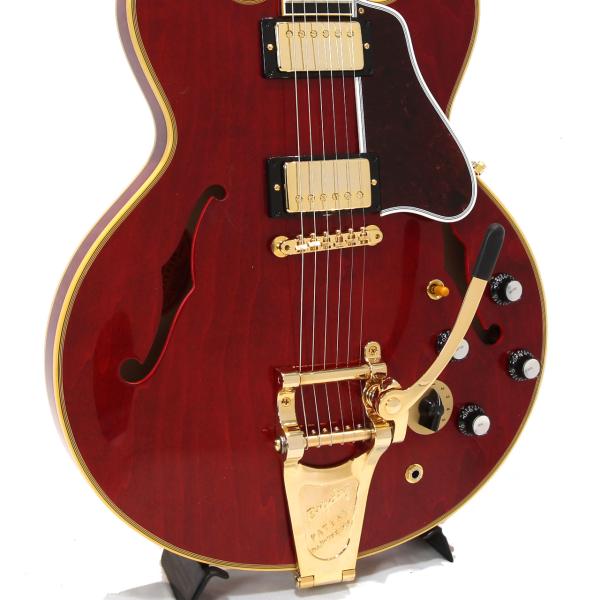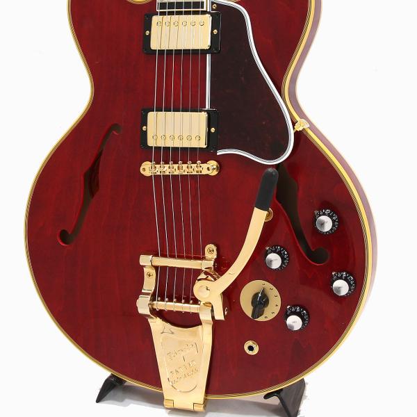 ヴィンテージオリジナルパーツの調査から復刻されたレプリカパーツによりリアルな風格でスプリットダイヤモンドのヘッドストックインレイ、ブロックポジション、マルチプライ・バインディング、ゴールドのハードウェアとESシリーズ最上位モデルらしい高級感あふれる仕上がりです。本機最大の特徴としてバリトンスイッチを搭載し通常ラインナップには無い特別モデルです。