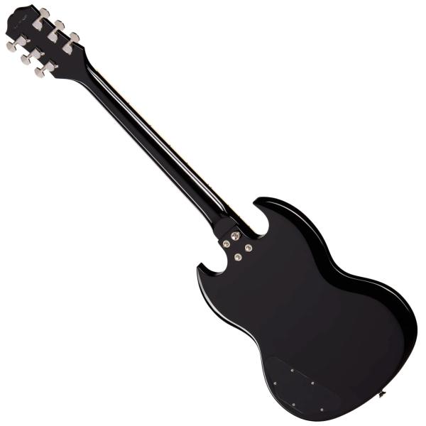 新たなラインナップのエントリーモデル、SGトリビュート。そしてボディトップにフレイムメイプルの化粧板、エボニーバーストカラーで1ランク上のルックスを実現。。