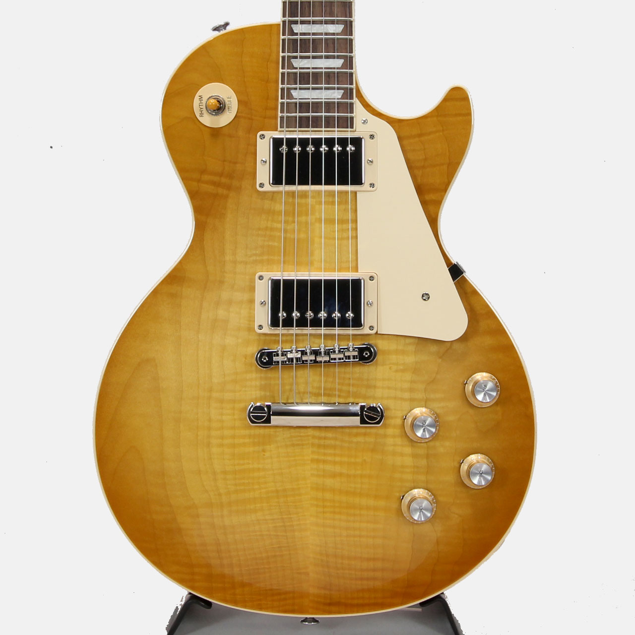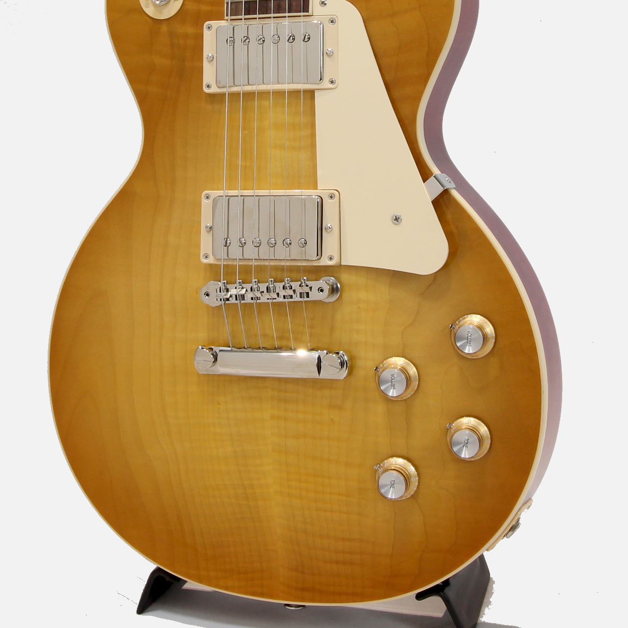 やや薄めに仕上げられたネックシェイプ、パワーを持たせたピックアップで現代志向寄りに作られたLes Paul Standard '60s。外周のフェイドを控えめに仕上げたアイスティーカラーは当店でも人気のカラーです。