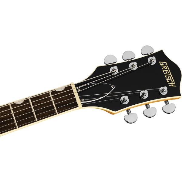 ダブルカッタウェイのアーチドメイプルボディにチェンバードセンターブロックを採用したG2655 Streamliner Center Block Jr. with V-Stoptailは、パーロイドNeo Classicサムネイルインレイと22本のミディアムジャンボフレットをあしらった12インチラジアスローレル指板のSoft "C"シェイプナトーネックを備え、卓越したルックスと共に、快適な演奏性を約束します。