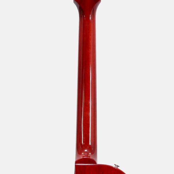 ノンウエイトリリーフの完全ソリッドボディのマホガニーボディにメイプルトップ、マホガニーネックにローズウッド指板。Vintage 50sの丸みのあるグリップは握り込んで演奏するのに程よい太さです。
