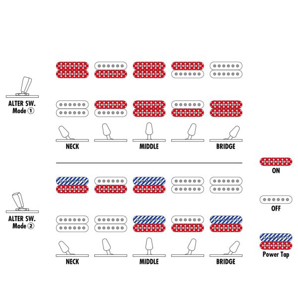 ローステッドメイプル、ジャンボステンレスフレット、ロッキングマシンヘッドなど上々のスペックにSuper All Accessネックジョイント、dyna-MIX10 スイッチングシステム搭載でミニスイッチの切り替えひとつで自由自在にハムバッカー・モードとシングルコイル・モードを切り替えられ、10パターンのサウンド・バリエーションと弾きやすさも実現。