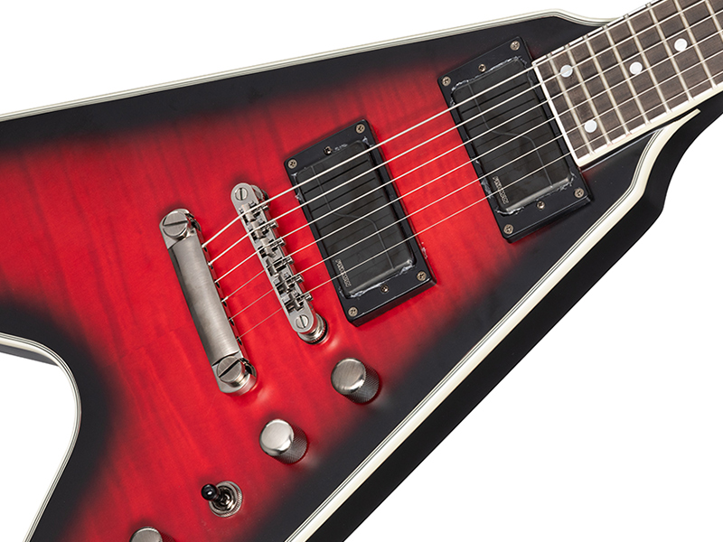 ギブソンで発売されたモデルを踏襲しつつエピフォンならではの抜群のコストパフォーマンスを誇る本機。おなじみの24フレット仕様のフライングVにエクスプローラーヘッド、ピックアップにはフィッシュマンの Fluenceピックアップを搭載。コイルレスピックアップならではのノイズレスなサウンド。パッシブライクなサウンドをプッシュプルによってヴォイシングを選択でき幅広いサウンドメイクが可能です。