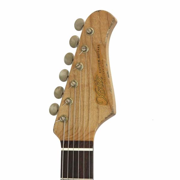 美しいAAAAグレードのフレイムローステッドメイプルネックの塗装は極薄仕上げで高次元なサウンドをアウトプットしてくれます。この素晴らしいネックマテリアルの素性とポテンシャルを存分に引き出すフィニッシュがヴィンテージフィールを持ちながらも現代音楽にマッチするように洗練されたXoticトーンを決定付けていると言っても過言ではありません。ニュアンスに対して余すことなく応えてくれるのでピッキングでトーンコントロールを積極的にしたいギタリストに是非試していただきたいです。