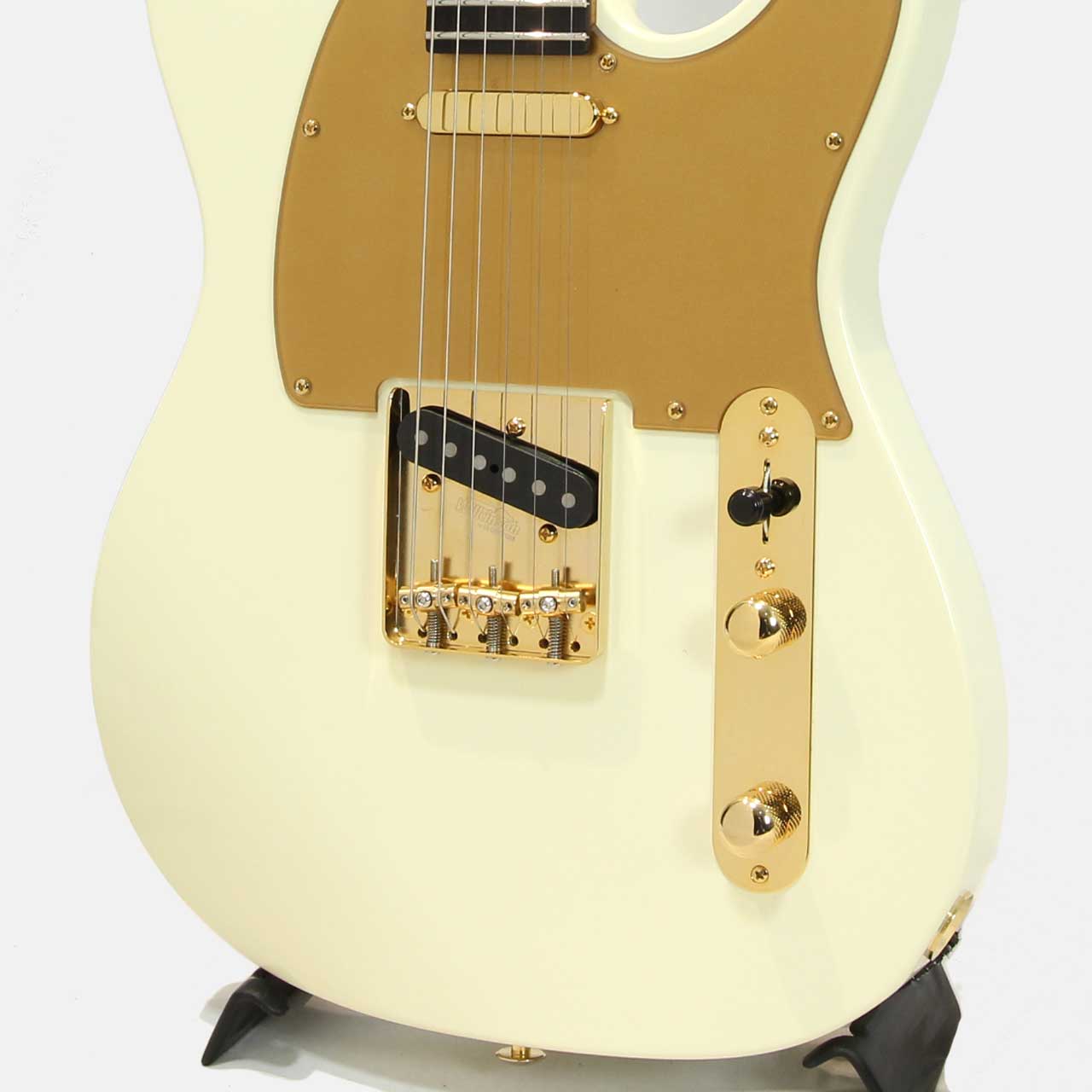 Classic T のアルダーボディとローストメイプルネックは、Mateus の伝説的なトーンに豊かでバランスのとれたベースとなるトーンを生み出し、まったく新しいゴールドピックガードと純真無垢なホワイトカラーはエレガントで上品な雰囲気を醸し出します。