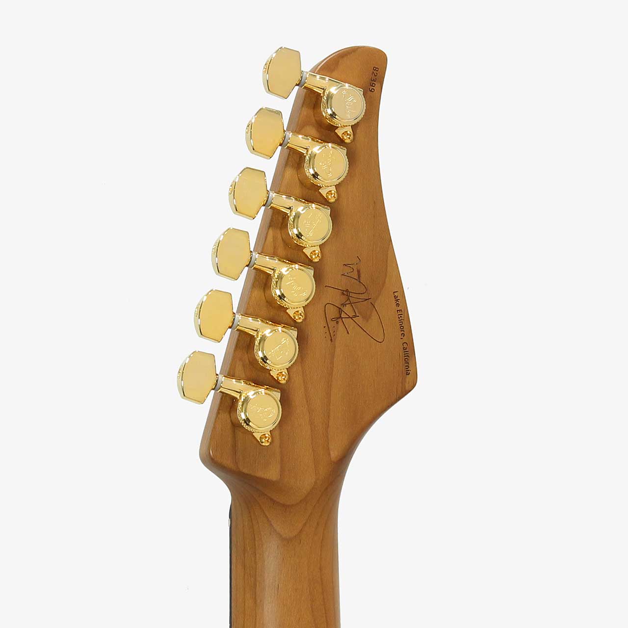 ネックプロファイルはMateus Asato カスタムプロフィール(.795″ – .885″)を採用。Mateus Asato Signature Classic T Black モデル(Even C Medium .840″ – .920″)よりも薄く、長時間の演奏や、素早いフレーズのプレイでもストレスを感じ させません。
