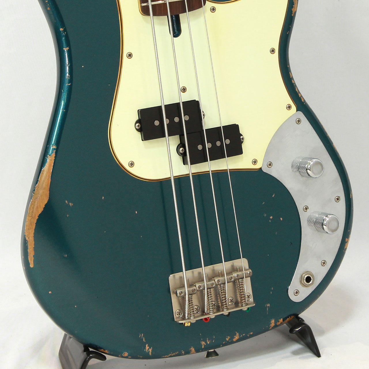 ボディはオールラッカー塗装でヘヴィエイジド加工されており大切に長年使用してきたかのようなキズなど絶妙な表現がされております。プレベらしい中域のふくよかなヴィンテージ感溢れるサウンドは、某ブランドカスタムショップものに引けを取らないばかりか、それをも超えてきてしまう絶妙な一本に仕上がっております。