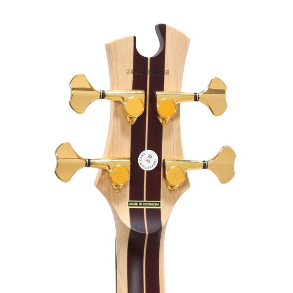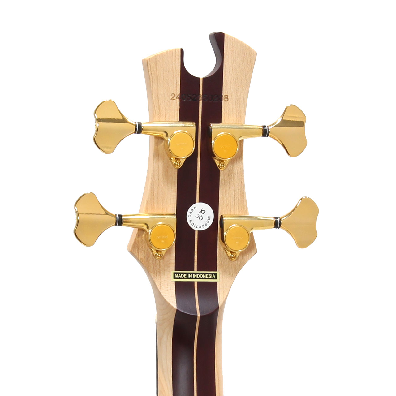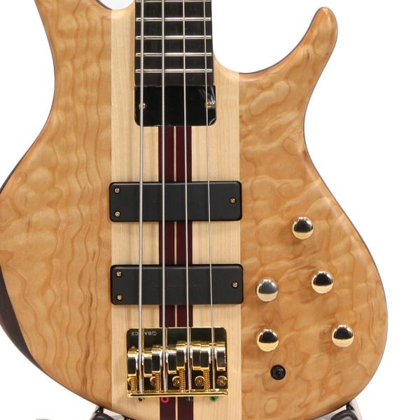 本モデルは、そのTobiasが誇るClassic IV。プロの現場でも即戦力となる一本で、細部までこだわった設計が魅力です。34インチスケールの5ピース・スルーネック構造に、ハードメイプルとパープルハートのネック、ウォルナットとウェンジ、さらに美しい杢目のキルテッドメイプル・トップを組み合わせたボディは、見た目の美しさと豊かな鳴りを両立。Tobias Asymネック・プロファイルにより手への馴染みも良く、快適な演奏性を実現。