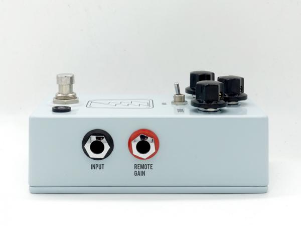 GAINトグルスイッチは2つのゲイン設定を切り替えるものですが、それは50年代や60年代の多くのアンプで見られたような、High/Lowのインプットジャックのようなものです。スイッチ下側では、最もクリーンかつ、若干暗くよりメロウなトーンが得られます。上側では巨大なヘッドルームと、高・中域が多くより歪む、最もロックなサウンドとなります。GAINトグルスイッチが作動しているときはステータスLEDは赤色に変わります。またGAINトグルスイッチはペダルの右側面にある1/4″ジャックを使用すればリモートでスイッチ操作が可能になります。ペダルを通常の設定にして、Redリモートで切り替えれば、ペダルボード内で余分なスペースを使うことなく、瞬時に2つ目のトーンが得られるのです。