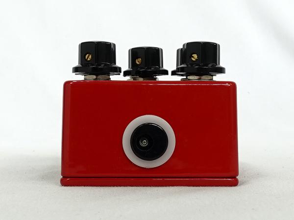 Angry Charlieには5つのコントロールが装備されています:VOLUME、DRIVE、BASS、MIDSそしてTREBLEです。VOLUMEコントロールはアンプにある通常のマスターボリュームのように機能します。単純に時計回りに回せば音量は上がり、反時計回りに回すと音量は下がります。DRIVEコントロールは、全体的な歪み/オーバードライブの量をコントロールしてシグナルパスに入力します。時計回りに回すとよりディストーションが掛かり、逆に回すと歪み量が少なくなります。V3で新しくなった点は、BASS、MIDS、TREBLEコントロールが追加されたことです。マーシャルアンプを忠実に複製するためには、完全なマーシャルスタイルのトーンスタックを組み込む時だと判断したのです。これらの3つのコントロール全ては、帯域のカットとブーストを行い、12時位置では相対的にフラットになります。右側面の1/4″ジャックはインプット、左側面にはアウトプットジャックが装備されています。