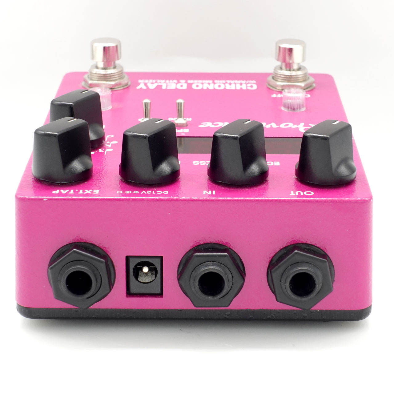 ダ イレクト音もデジタル変換しているものは音が僅かに遅延していて、本当の意味でのダイレクト音とは言えません。CHRONO DELAYは正確無比に遅延されたデジタル信号をアナログ信号に変換し、ECHO HARDNESS・FEED BACK・MIXのアナログコントロール回路を通す事でダイレクト信号と違和感なくミックスして、奥行きのある高品位なディレイサウンドを作り出すことが 可能です。