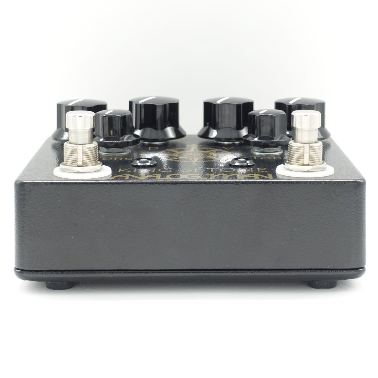King Of Toneオーバードライブは、アンプをリーズナブルなセッティングで、ピュアでスムーズな真空管ディストーションに自然にドライブさせた時のようなサウンドにするために設計されました。ジムの1960年代のFender Deluxe Reverbアンプで、アンプが歌っている時のサウンドを再現するために微調整されましたが、プリアンプとパワー管の自然な真空管アンプの歪みをシミュレートするために、音量は低めに設定されています。これは、VoxやMarshallなどの他のアンプでも同じことができ、そのアンプ自身の声で歌わせることができます。