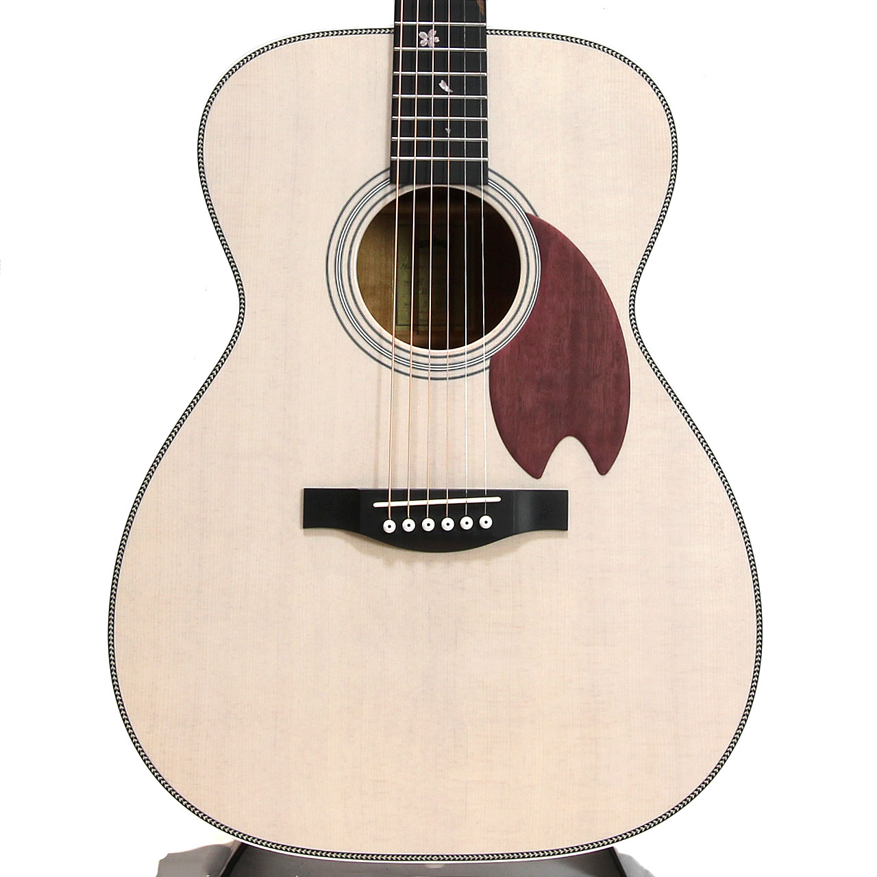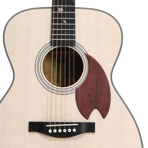 桜ギターを象徴するパープルハート材で作られた桜型のピックガード。最初に作られた一本から変わらない、Headwayの桜ギターである証です。