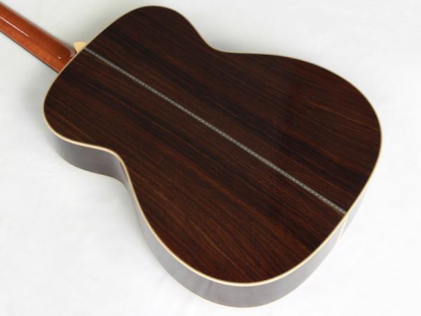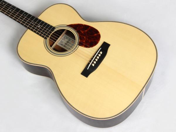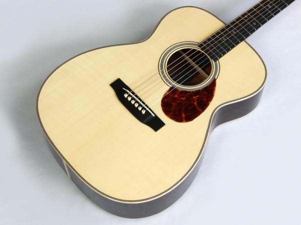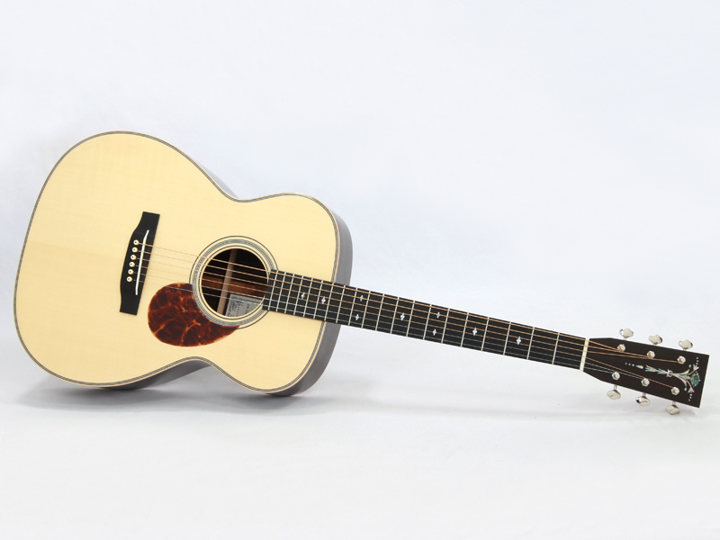 レギュラーモデルに使用していないイングルマンスプルースを表面板に採用した特別なモデルで、000のボディに645.2mmスケールを採用した所謂「OM」スタイルの商品です。