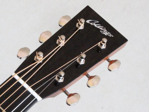本器は、コリングス社へカスタムオーダーしました当店オリジナル・スペックモデル。OM-1を基調にオールマホガニー仕様とし、カッタウェイを施しました。ボディトリムにはヘリンボーンをあしらい、ロングサドルへとカスタマイズしております。