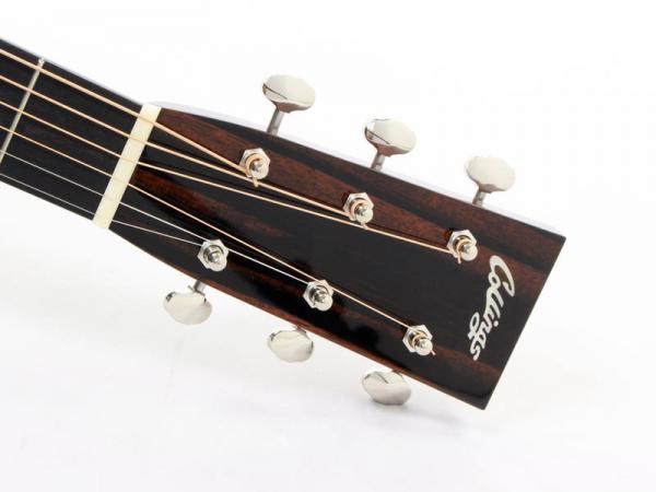 コリングス社で国内代理店が厳選した上質なジャーマンスプルース材TOP、インディアンローズウッド材SIDE&BACK、ホンジュラスマホガニー材NECK、エボニー材指板&ブリッジ、44.5mmナット幅、約648mmスケール、Nickel Waverlyペグ、アイボロイド・バインディング、ヘリンボーントリム、ジグザグバックストリップが特徴的となります。