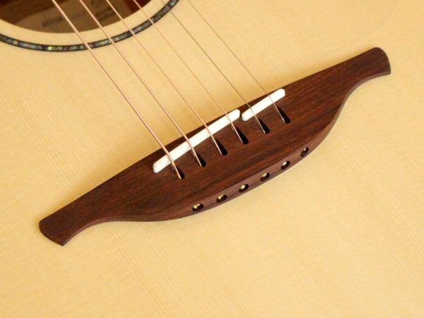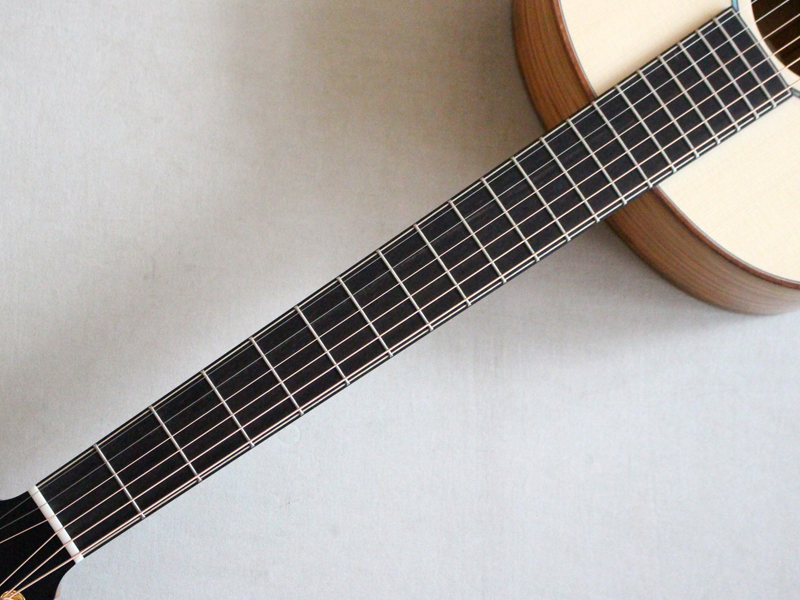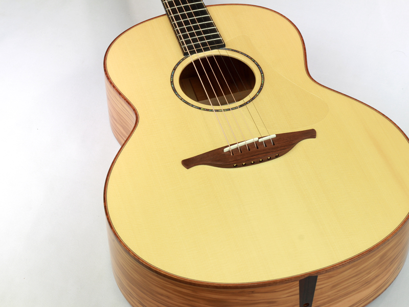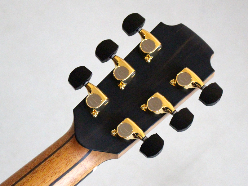 アルパインスプルース材TOP、オリーブ材SIDE&BACK、5ピース・マホガニー材ネック、エボニー材指板、ローズウッド材ブリッジ、44.5mmナット幅、650mmスケール、GOTOH Gold 510ペグ、フィンガースタイルにピッタリな大変魅力的なスペックです。