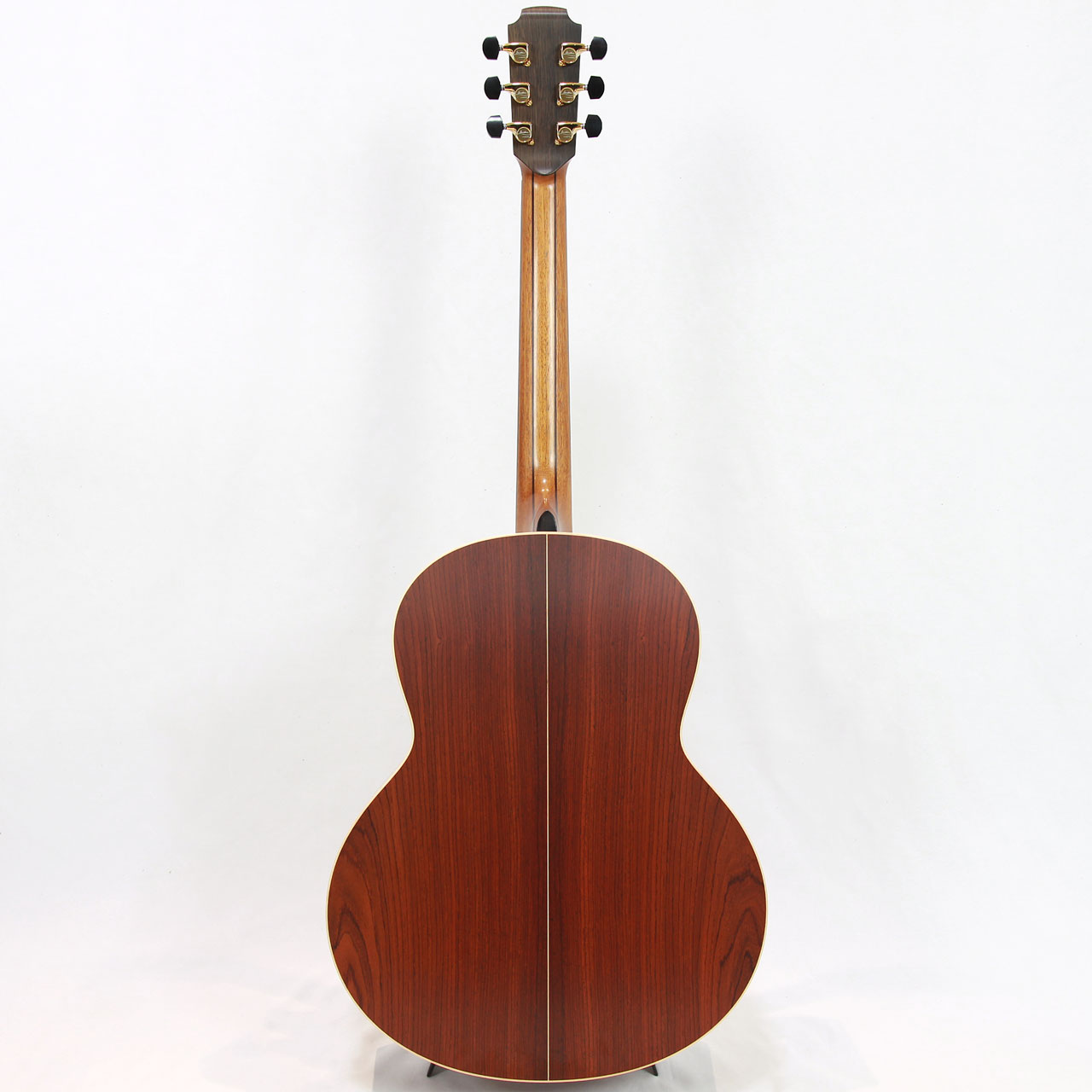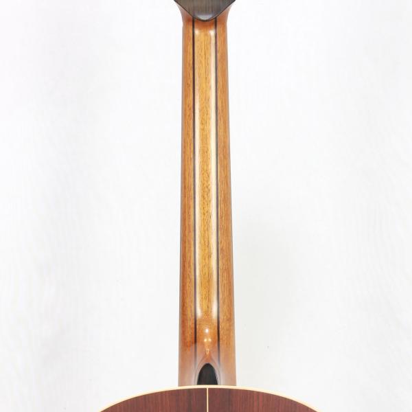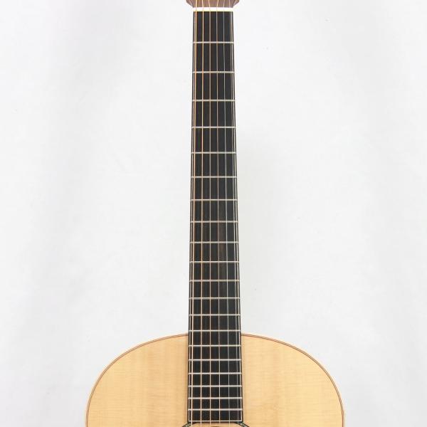 抱え易いFボディに、TOP材には非常に美しい木目のシトカスプルース、SIDE&BACK材はココボロを使用。5ピース・マホガニー/ローズウッド/ウォルナット材ネック、エボニー材指板、ローズウッド材ブリッジ、44.5mmナット幅、650mmスケール、メイプル材バインディング、GOTOH Gold 510ペグ、厳選された極上のスペックです。
