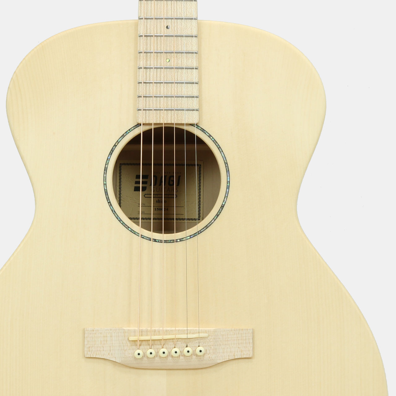ボディサイズはパワフルな音色のグランドオーディトリアムを基本に、やや薄めのボディ厚を採用し抱えやすさも重視。サウンドホールにあしらわれたロゼッタはアバロン貝の装飾によるシングルリングで、シンプルながらも高級感と愛らしいルックスがワンポイントです。