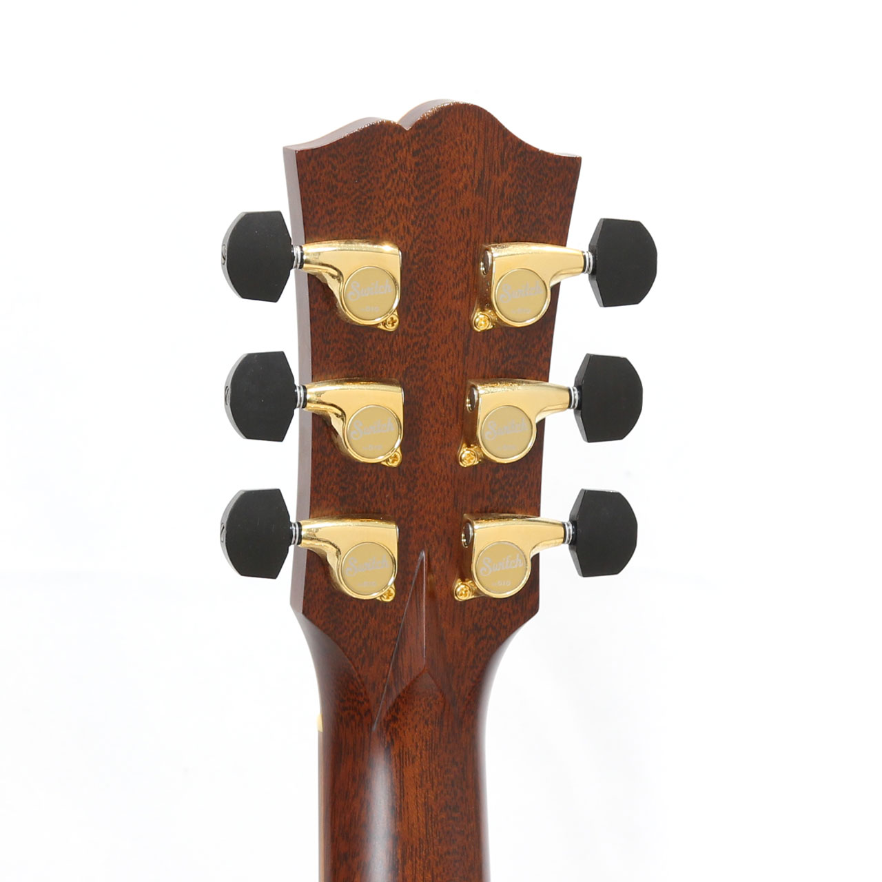 スペックは、シトカスプルース材トップ、インディアン・ローズウッド材サイド&バック、アフリカン・マホガニー材1ピースネック、エボニー指板&ブリッジ、ゴトー製ロトマチック糸巻き(SGL510)、アバロンロゼッタ、ラッカー・フィニッシュ(ネックは演奏性を考慮しウレタン仕上げ)、44.5mmナット幅に648mmスケールとなっております。