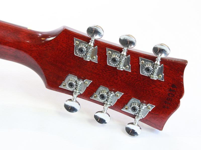 スプルース材TOP、マホガニー材SIDE&BACK、マホガニー材ネック、ハカランダ材指板、プラスティックブリッジ&アジャスタブル・サドル、ラージピックガード、ヘッド角度14度、約39.5mmのナローネック、628mmスケール、この時期だけ実装されているオリジナルの日本製のメタルオープンギアペグと、ヴィンテージらしさ漂う素晴らしい状態です。