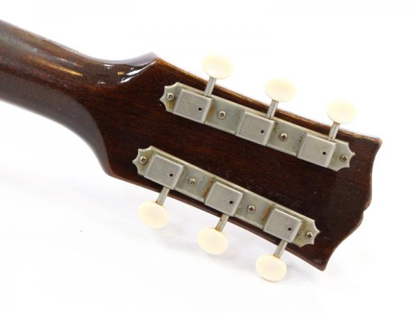 スプルース材TOP、マホガニー材SIDE&BACK、マホガニー材ネック、ハカランダ材指板、ハカランダ材ブリッジ&アジャストタイプからリプレイスされた牛骨サドル、ラージピックガード、ヘッド角度14度、約39.5mmのナローネック、628mmスケール、ヴィンテージらしさ漂う素晴らしい状態です。
