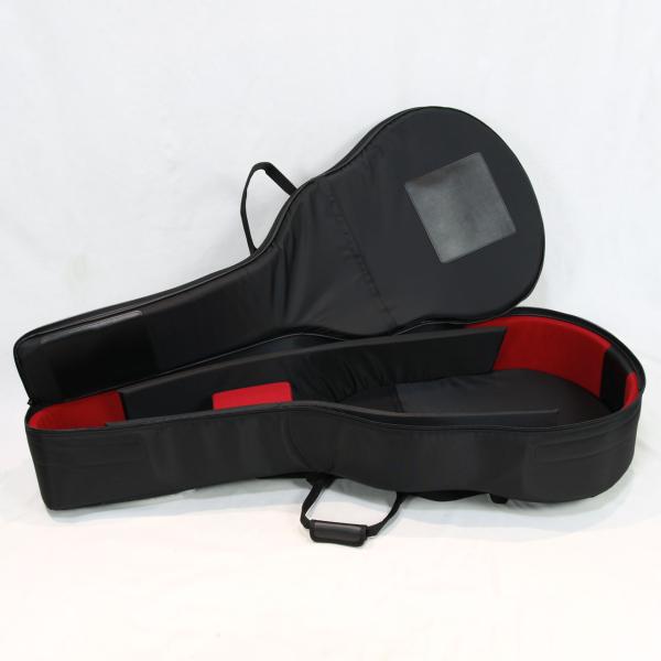 L-5よりも大き目の18インチボディに削り出しのソリッドスプルース、フレイムメイプル材サイド&バック、フレイムメイプル材ネック、エボニー材指板、ローズウッド材ブリッジ、グローバー社インペリアル・ゴールドペグ、647.7mmスケール、約42mmナット。