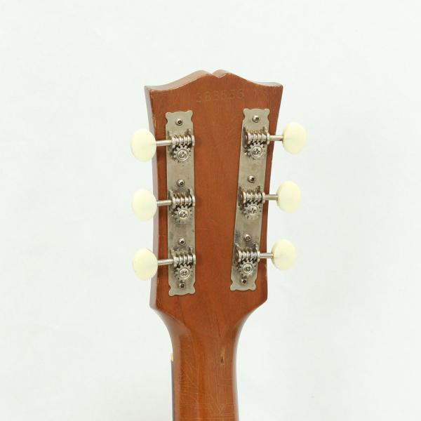 本器はそんな1966年製のLG-0、マホガニー材TOP(ラダーブレイシング)、マホガニー材SIDE&BACK、マホガニー材ネック、ローズウッド材指板、オリジナルプラスティックブリッジ、オープンバック3連チューナー、ビス止めピックガード、628mmスケール、約39mmのナローネック仕様となっております。