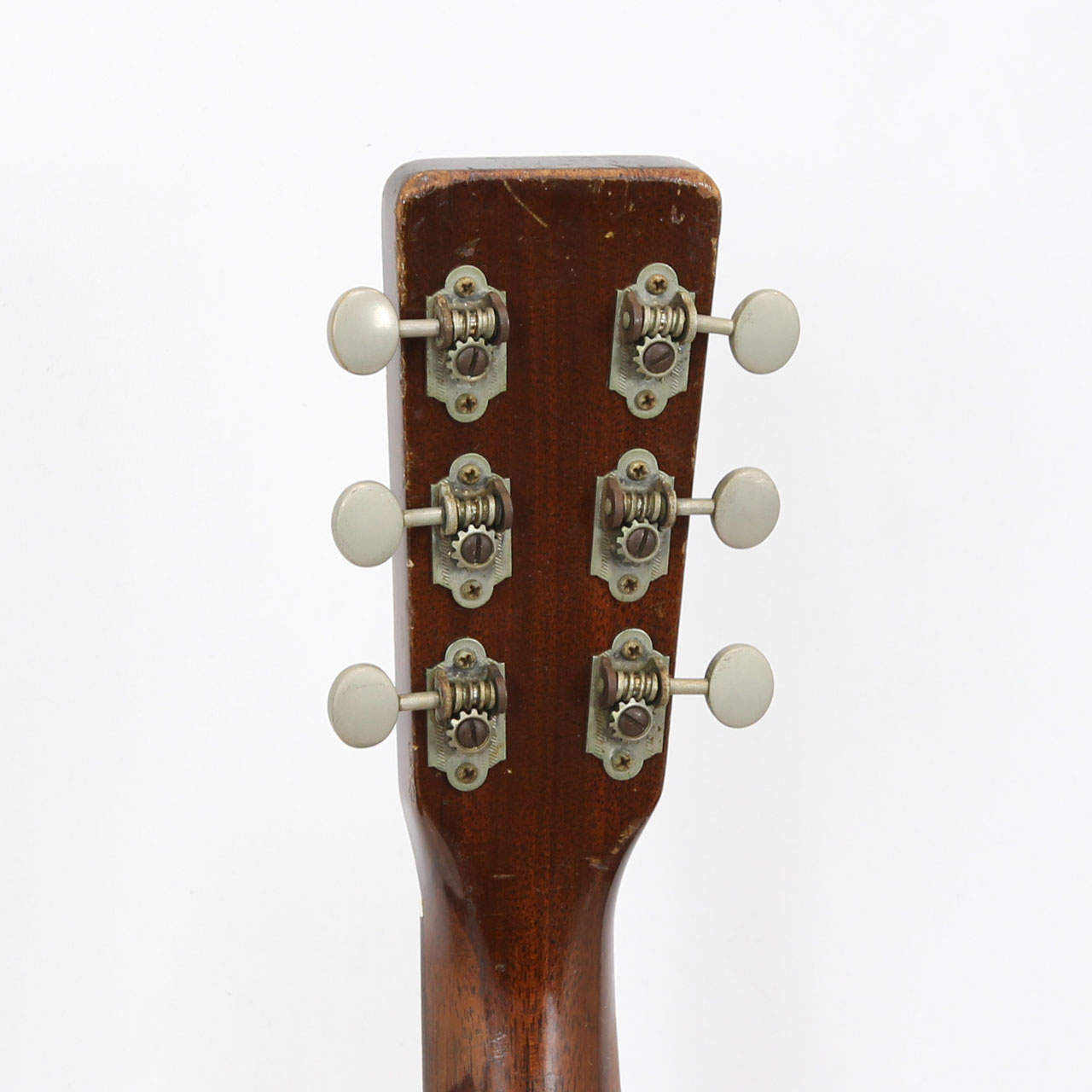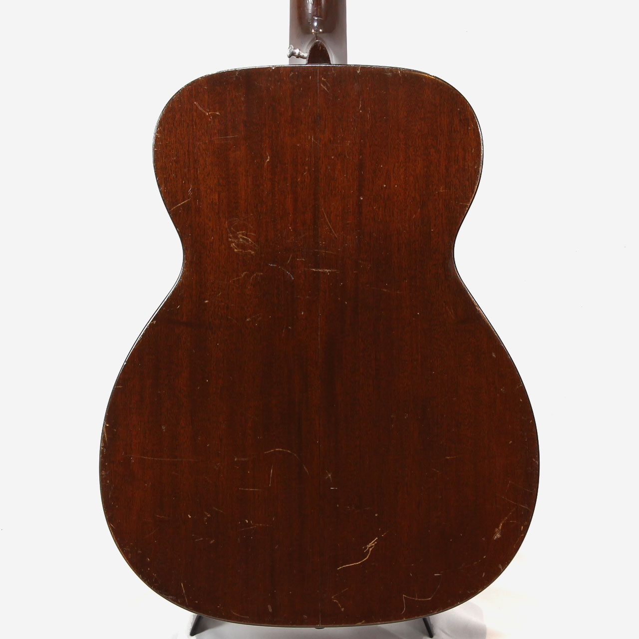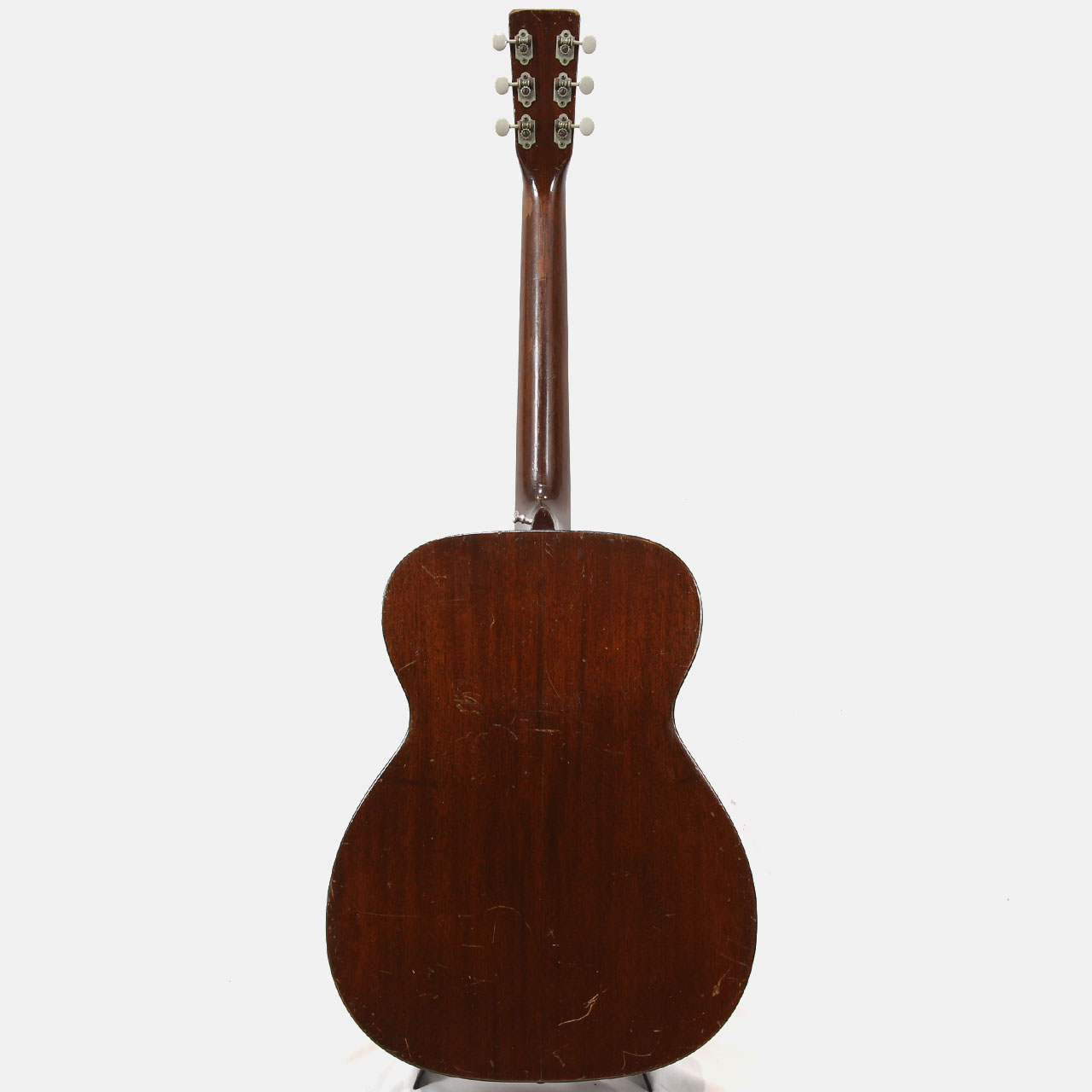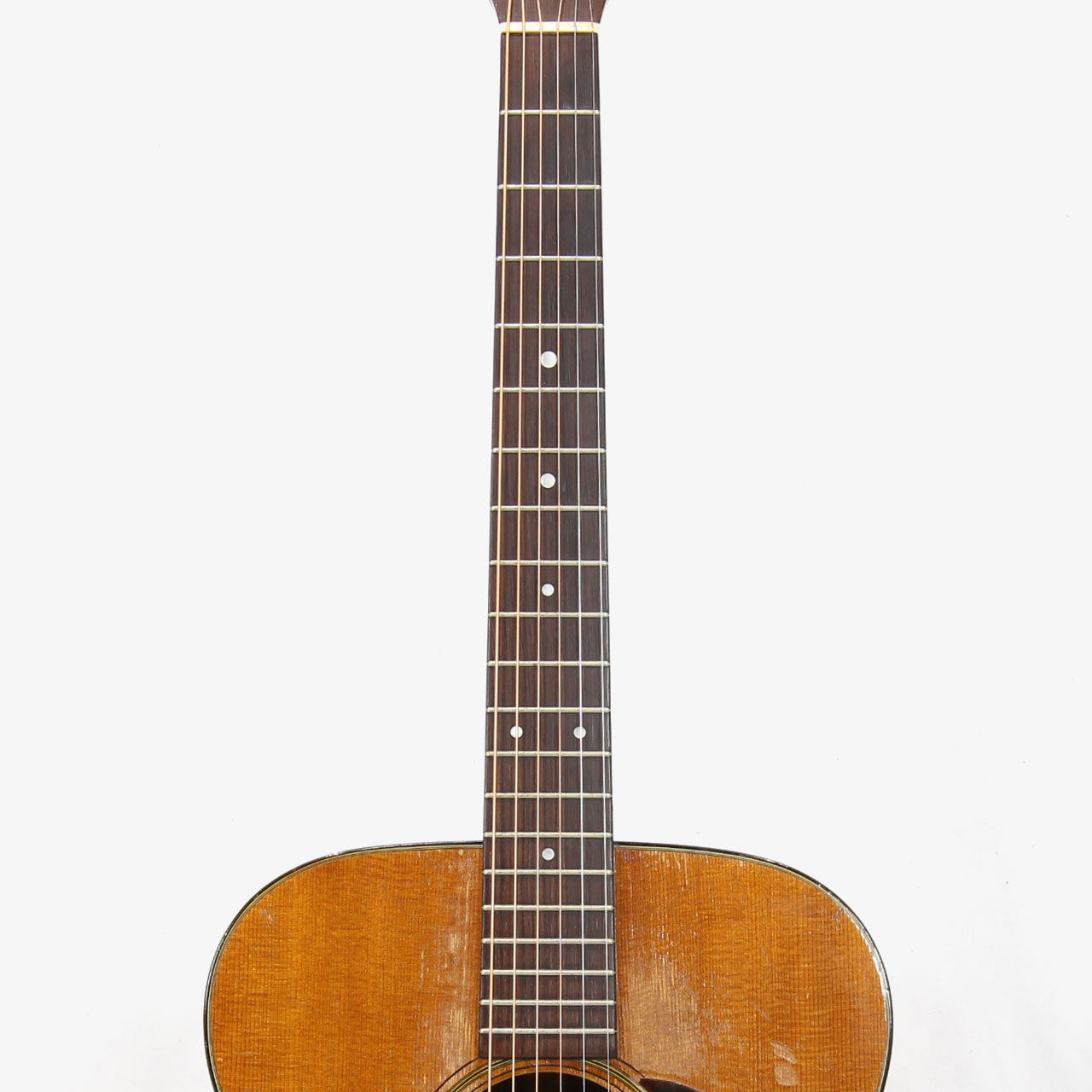 ピックガード下からブリッジにかけて2弦と1弦の間に3cm程の表面的なマーチンクラック。ナット、サドル、フレット、ブリッジピン、エンドピンは交換済み。6弦側のサイド材ショルダー部、ネックから3cm程離れた場所にストラップピンが打たれていた木埋め補修痕有り。その他、ネックヒール部にもストラップピンが打たれておりますが、全体的に見てこの年代のヴィンテージとしてはコンディション良好な個体です。