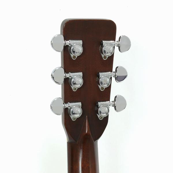 当店入荷時にネックリセット、ナット&サドルの交換をしており再セットアップ済み。ネックはストレートで弦高が12F上6弦側が約2.5mm、1弦側が約1.8mmで調整しております。サウンドホールを正面から見て10時方向のリングの淵から垂直に約3cm程のクラック修正痕、ブリッジの1弦ピンホール上部からピックガードへかけて約3cm程のマーチンクラック修正痕がございますが、どちらも軽微なもので目立ちません。その他、タッチアップ痕などで塗装が汚れて見える場所が数か所ございましたので、当店にて綺麗に手直ししております。